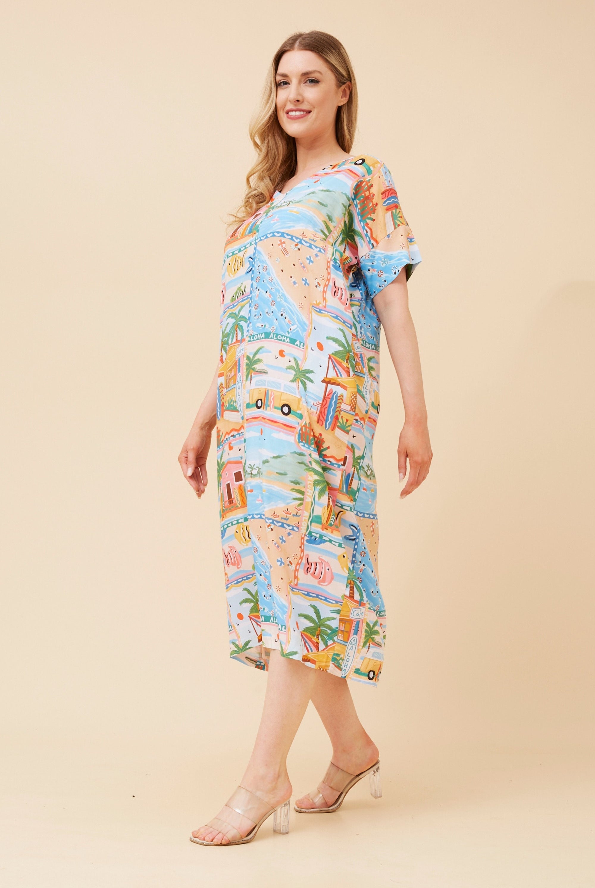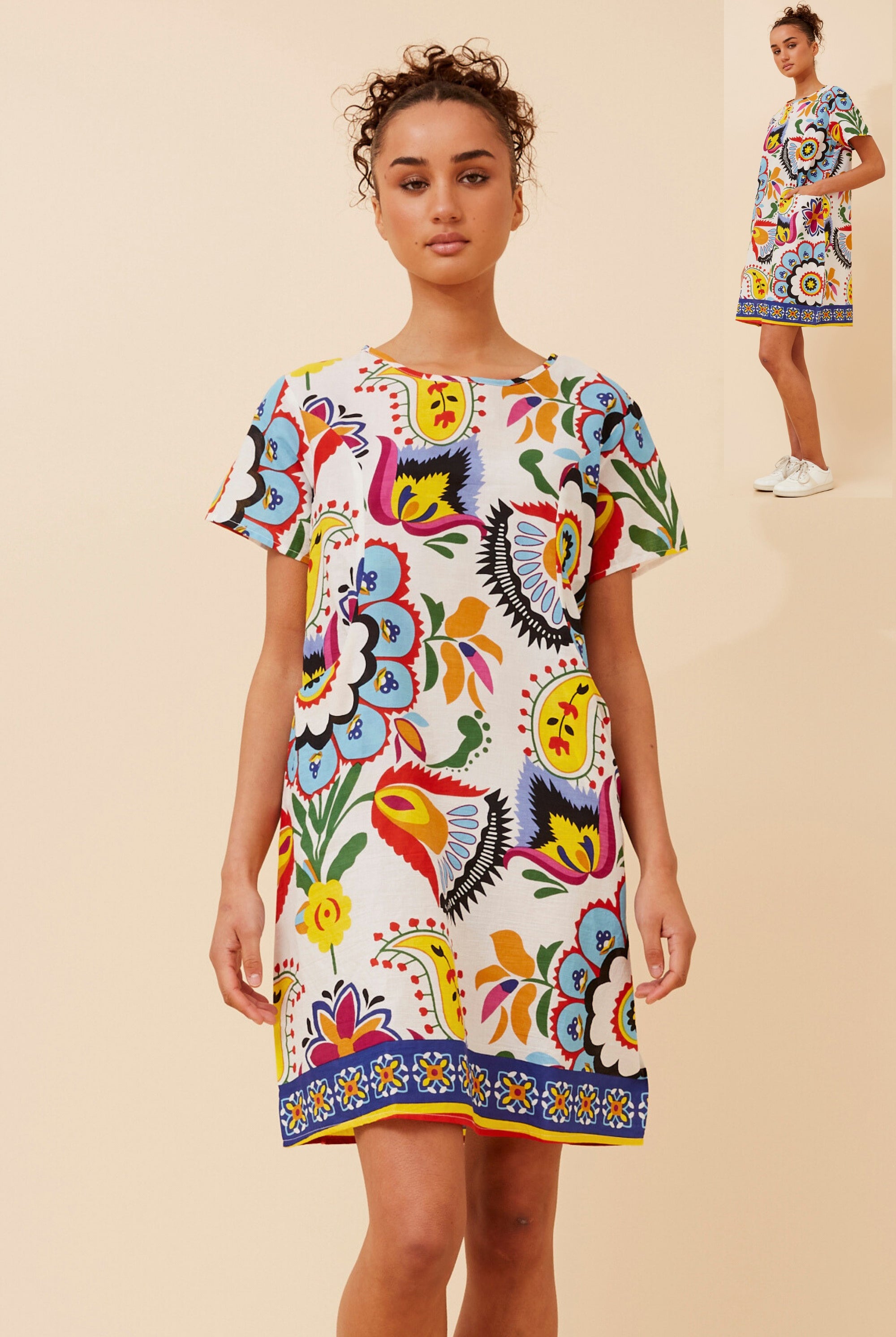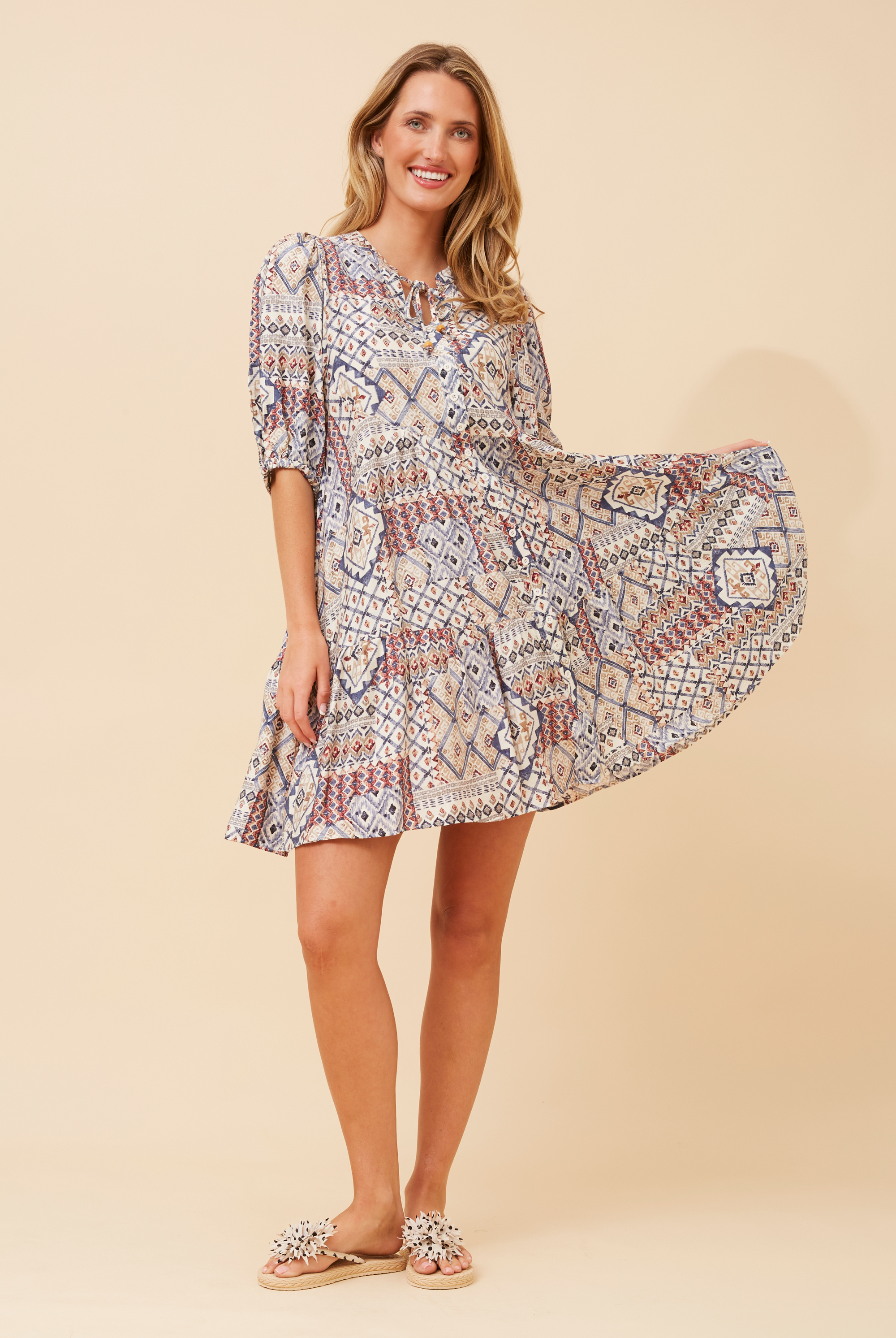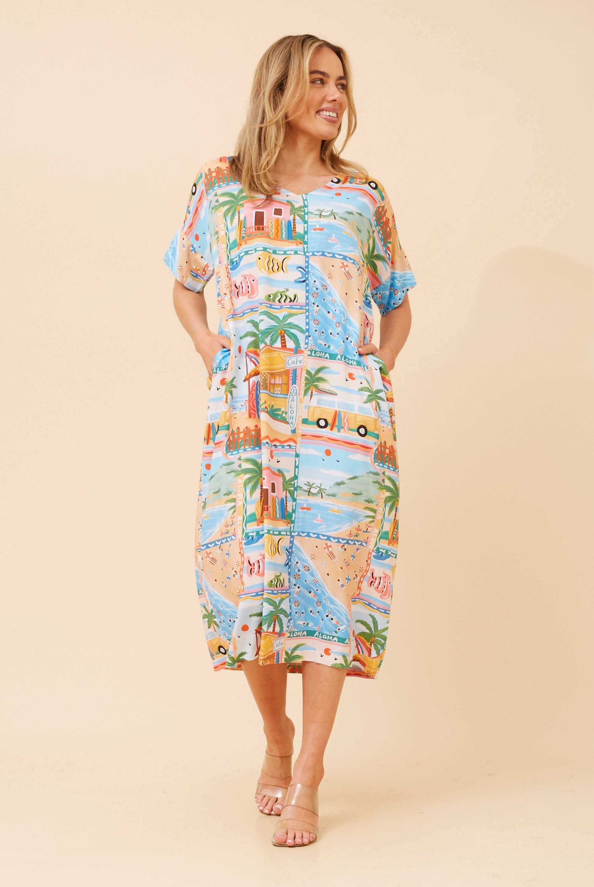 The Positano Sundress is such a flattering silhouette, so comfortable, bright & breezy. It's such a gorgeous summery print.