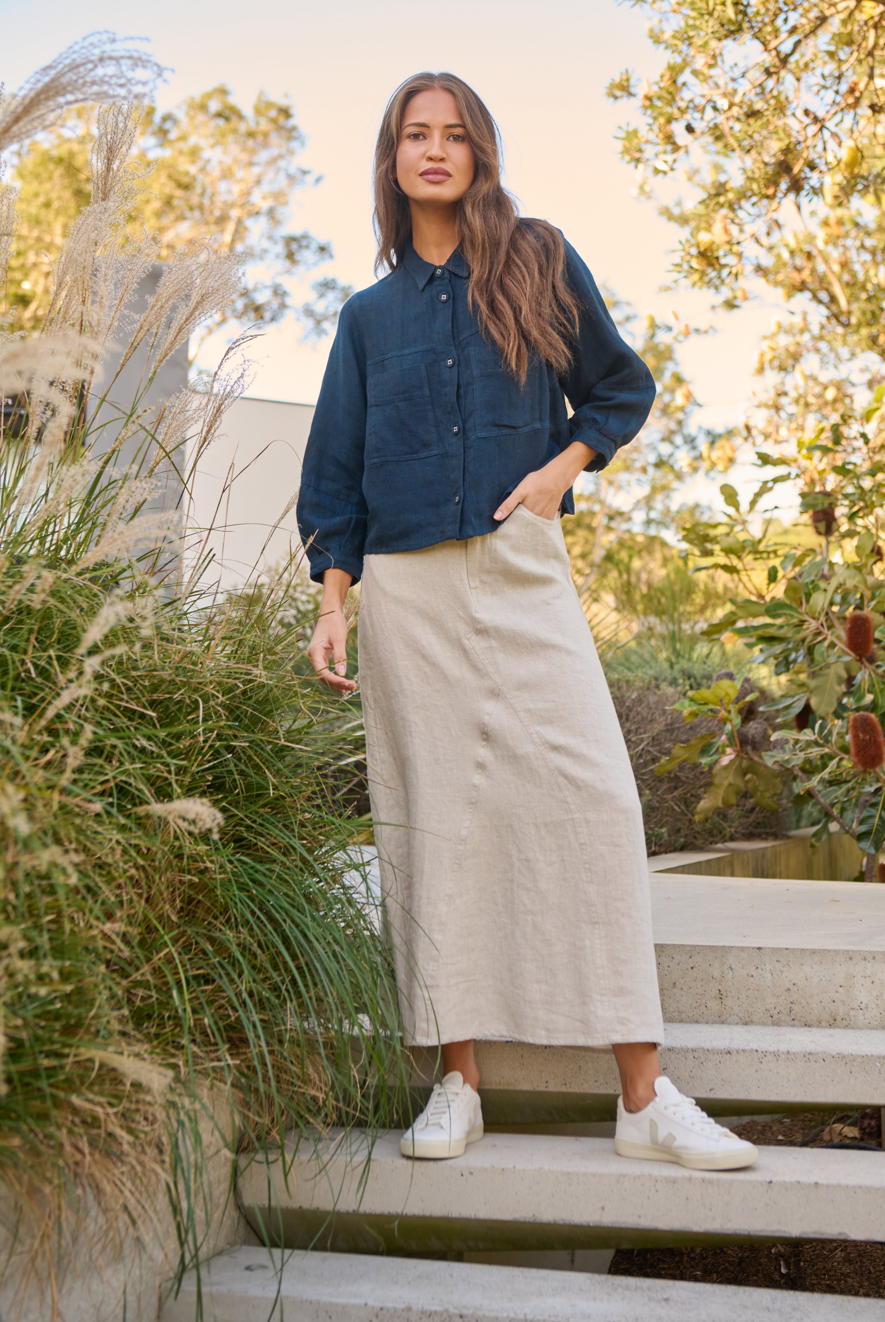Lightweight for between seasons. Ideal for travelling as it doesn't need ironing.