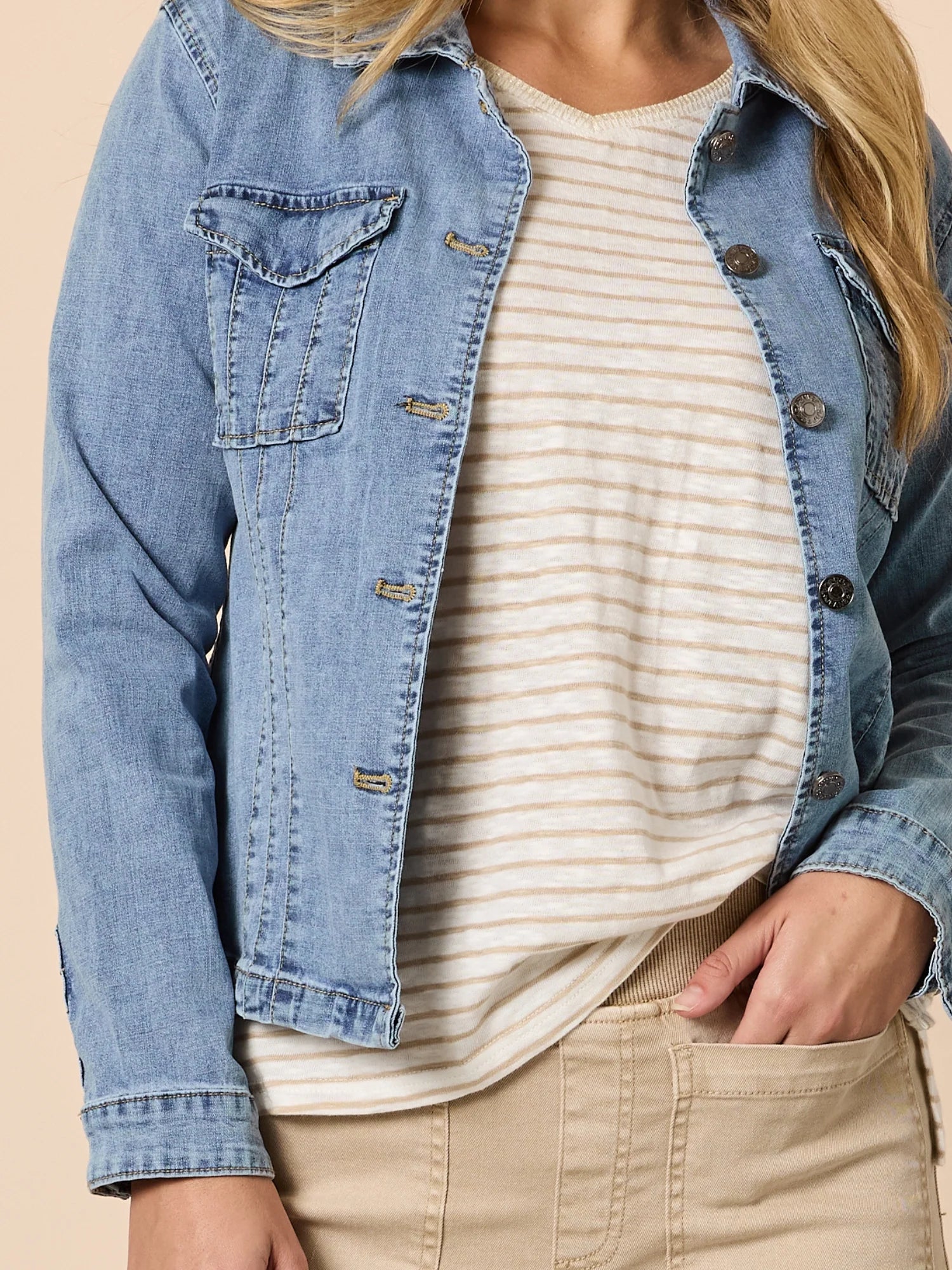 Lightweight for between seasons. Ideal for travelling as it doesn't need ironing.