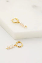 This earring features a triple pearl drop elegantly suspended from the hoop, creating a stunning visual effect. Whether worn alone for a minimalist look or stacked with other earrings for a bold statement, the Chantelle Earring effortlessly enhances your style. Its timeless design and lustrous pearls make it suitable for any occasion, from casual outings to formal events.