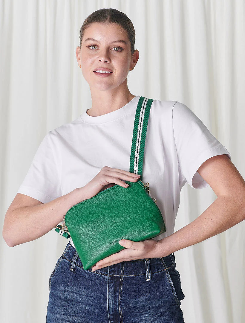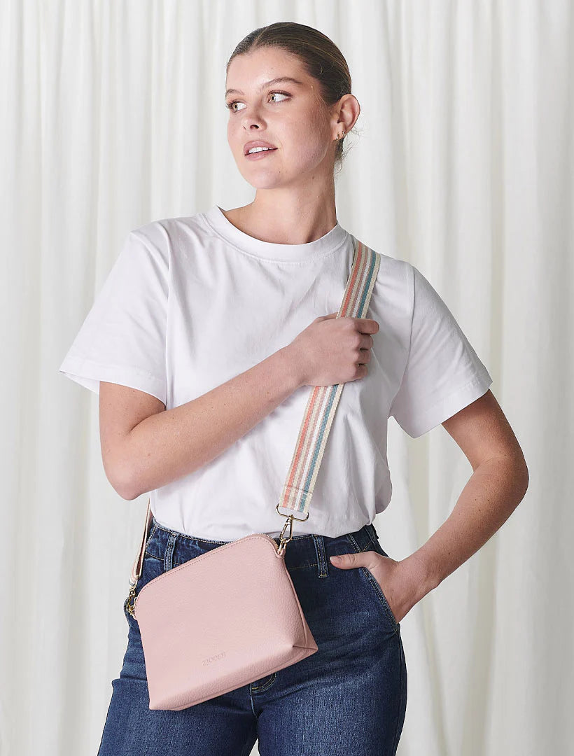 Our latest Hudson Cross Body Bag Navy combines style and function with two removable straps: a classic PU strap with gold chain and a playful webbing strap. A versatile bag perfect for when you need to carry a little bit more than your everyday essentials. Do it with style in this gold cross body bag.