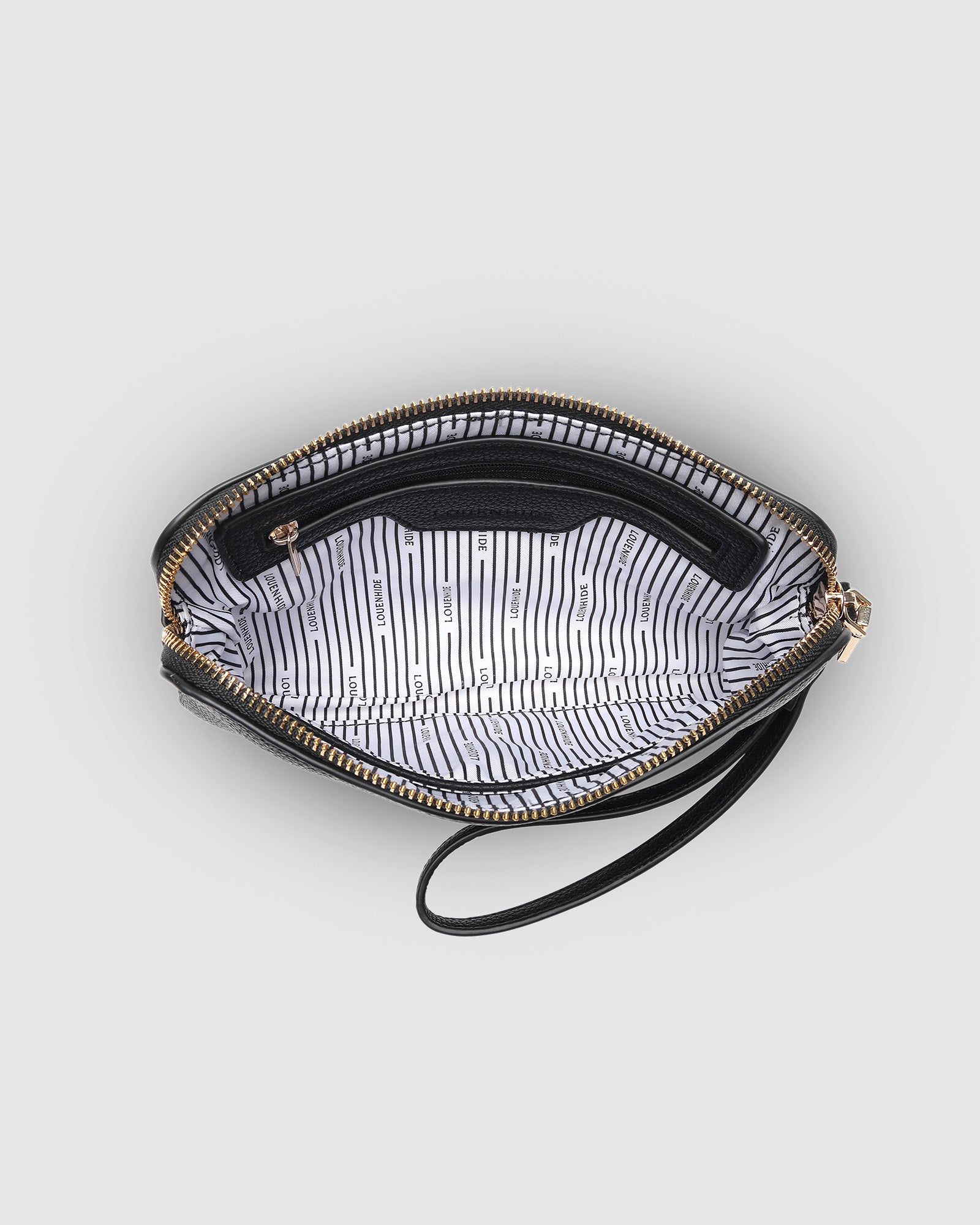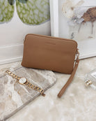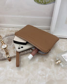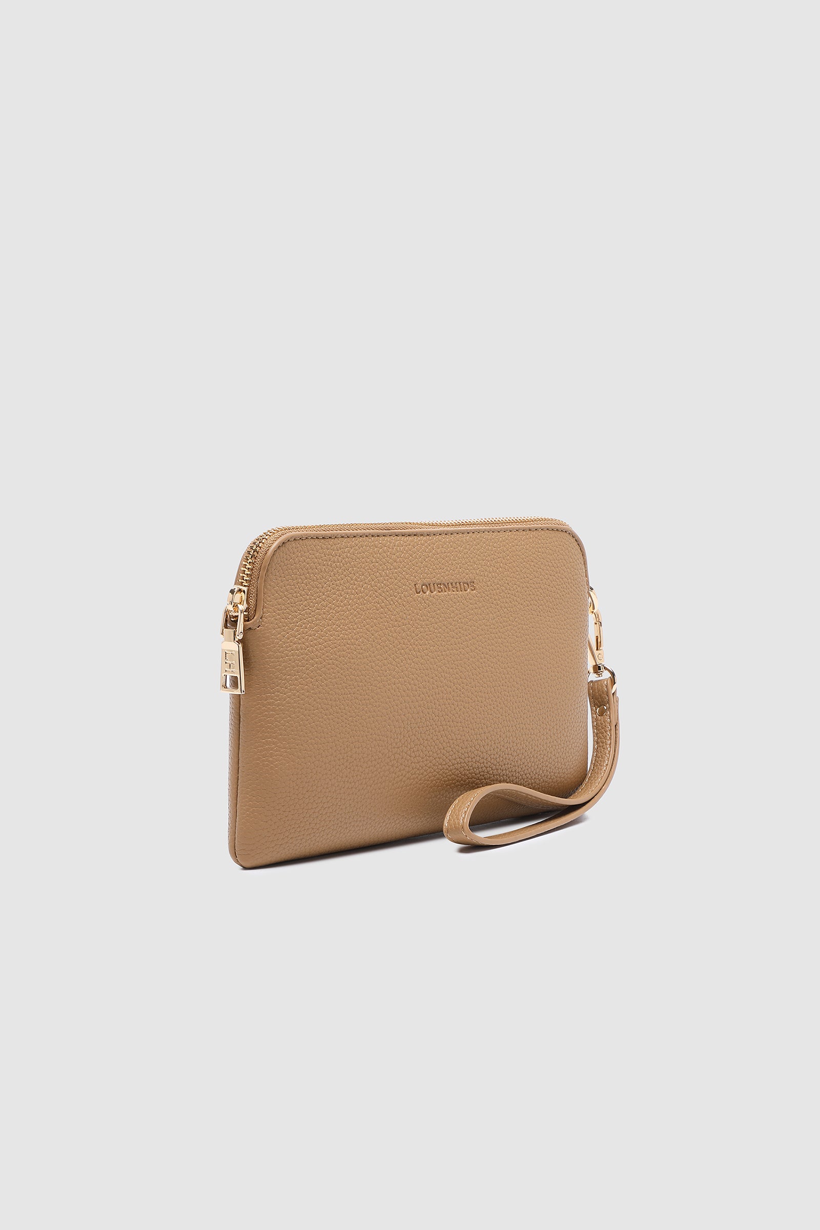 The Poppy Clutch is a timeless essential designed for effortless versatility. Made from buttery soft vegan leather and accented with light gold hardware, her slim silhouette transitions seamlessly from day to night. Keep your must-haves close with an internal zip and slip pocket, while the back pocket offers quick access on the go. Finished with a secure top zip closure and detachable wristlet, Poppy can be styled as a sleek wallet tucked inside your tote or carried on her own as an elegant clutch. Simple, functional, and refined - she’s the piece you’ll reach for season after season.