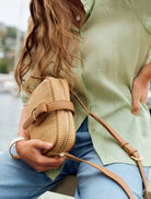 Beautifully crafted from woven vegan PU leather, it captures the textured look of straw while being made from recycled materials. The Ruby Palma features gold-plated hardware and two strap options — a matching PU strap for classic styling and a sporty webbing strap for a more modern vibe.
