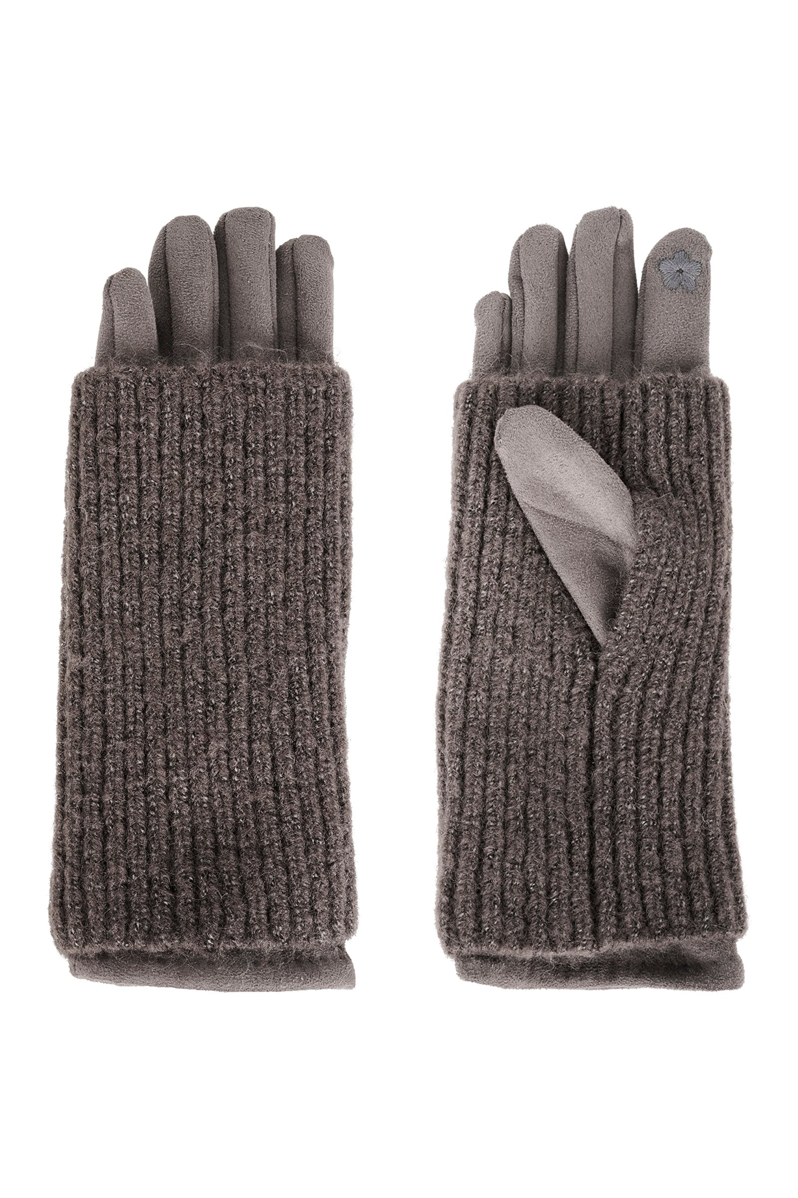 A cosy full-finger glove designed for warmth without sacrificing style. Finished with soft ribbed layer over warm classic glove and a subtle flower touch on the index finger, it's practical, playful and winter-ready.