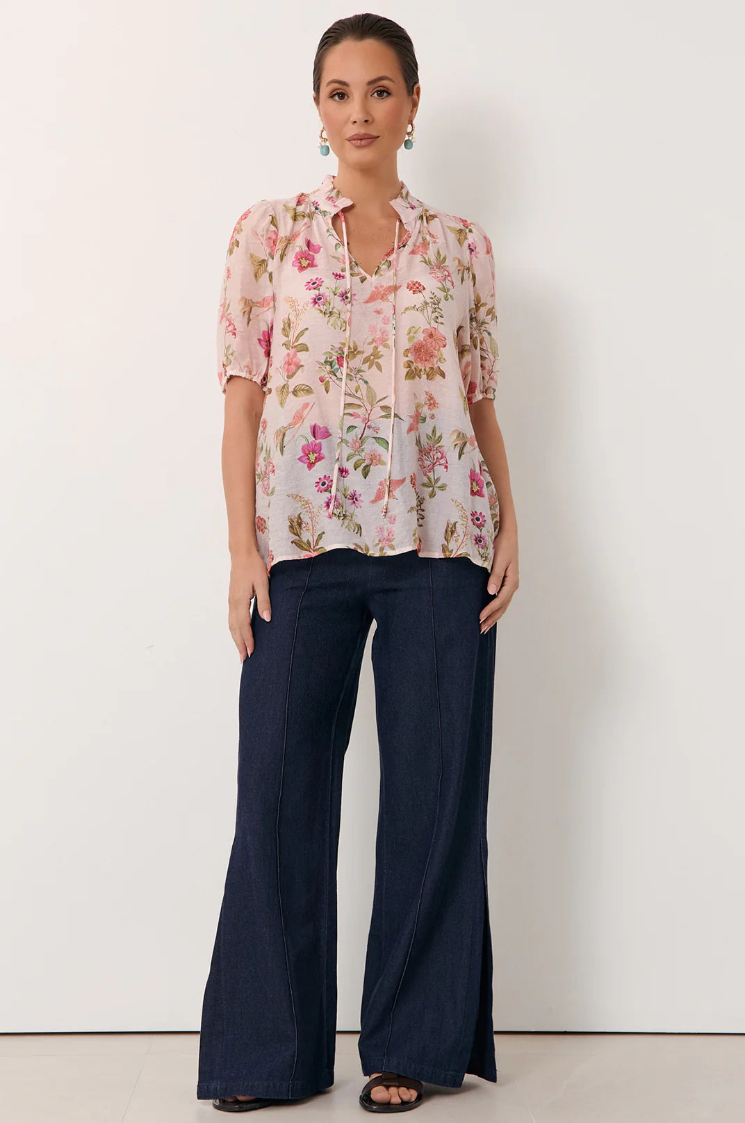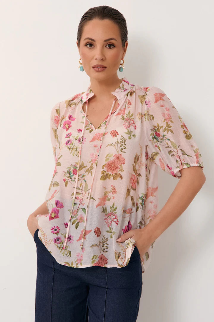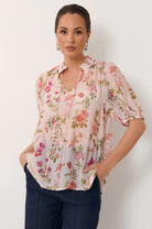 Fresh, feminine, and so easy to wear – the Sandra Short Sleeve Top comes in an exclusive adorne print that instantly brightens your look. Made from a soft rayon-nylon blend, it drapes beautifully while still feeling light and breathable. The frill detail and tie-front neckline bring a touch of charm, and the elasticated cuffs keep it comfortable all day long.