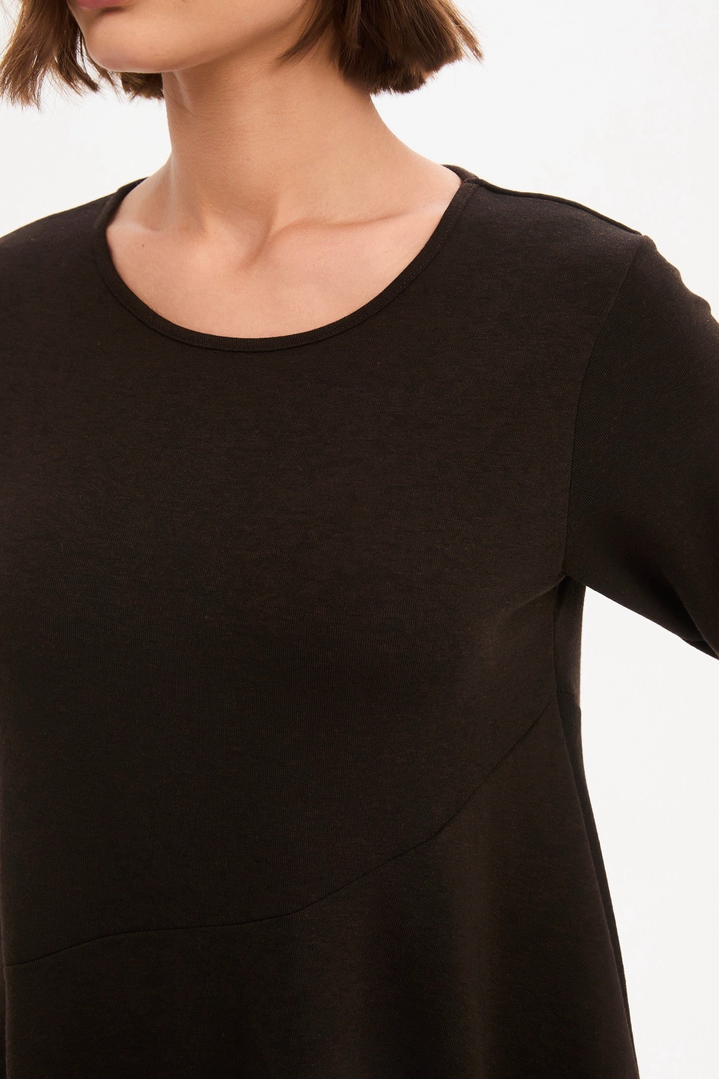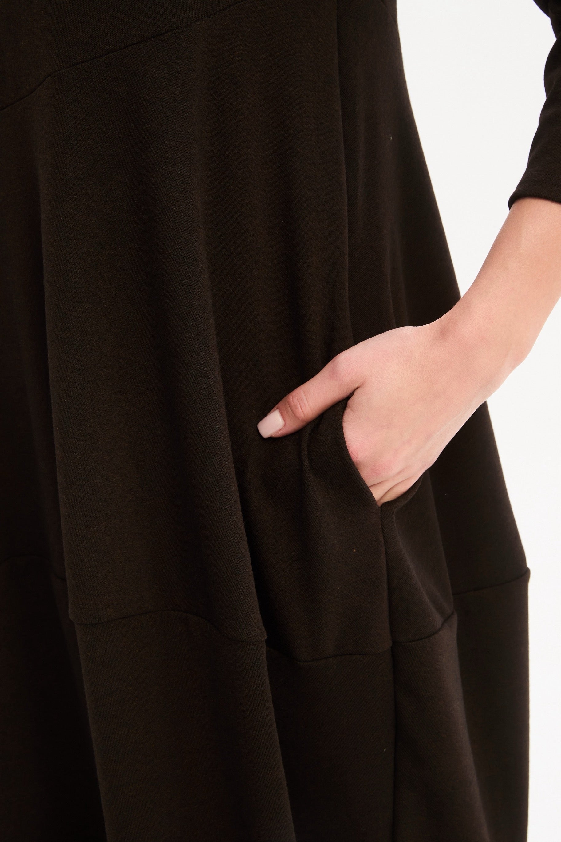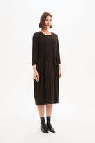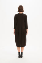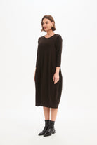 Discover the timeless charm of our Diagonal Seam Knit Dress. Perfect for cooler weather, this elegant midi dress features comfortable 3/4 sleeves and a flattering balloon skirt that creates a soft, feminine silhouette. The distinctive diagonal seam detail adds subtle structure and visual interest, while side pockets bring everyday practicality. Effortlessly versatile, this dress is ideal for both casual days and more polished occasions—making it a piece you'll reach for season after season.