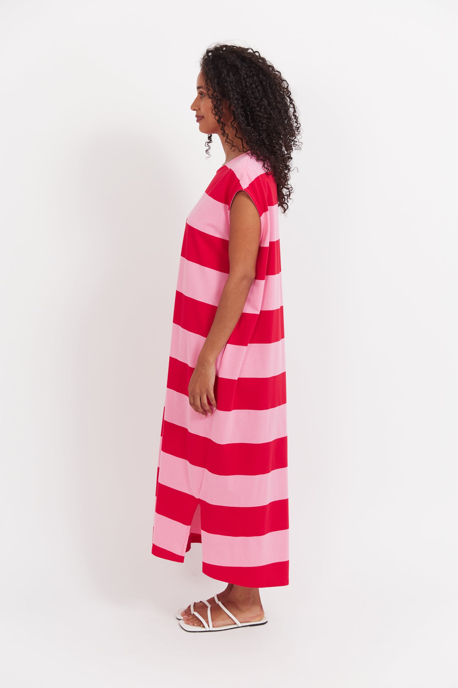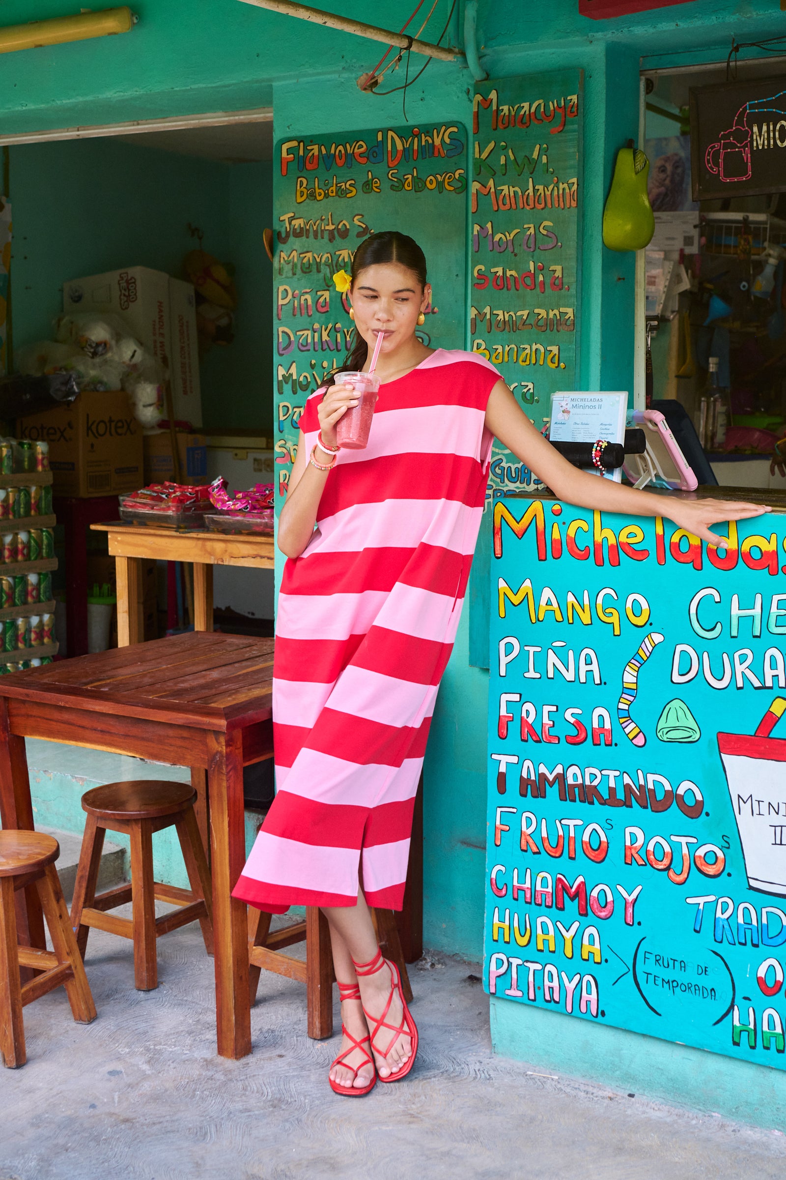 The Jardin Stripe Maxi is the dress that makes effortless style feel easy. With its bold block stripe design and breathable cotton fabric, this sleeveless beauty is all about comfort without losing that chic edge. Perfect for sunny days, travel, or simply lounging in style, it’s a piece you’ll find yourself reaching for again and again.