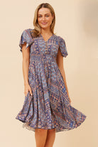 Bright, playful, and perfect for sunny days — the Lexi Patchwork Dress is a cheerful addition to your summer wardrobe. With its flattering V neckline, short flounce sleeves, and a whimsical patchwork-inspired print, it’s designed to make getting dressed feel effortless while keeping comfort front of mind. The shirred waistband gives a gentle shape, and handy side pockets add a practical touch.