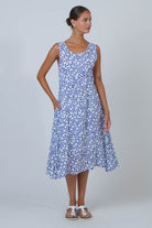 Light, flowing, and effortlessly flattering, the Radiance Dress is perfect for sunny days and warm evenings. Its sleeveless silhouette and classic scoop neckline create an easy, breezy look, while the defined waist flows into an A-line skirt that moves beautifully with every step. Practical side pockets and a subtle high-low hemline add both style and function, and the 100% crinkle cotton fabric keeps you cool and comfortable all day long.