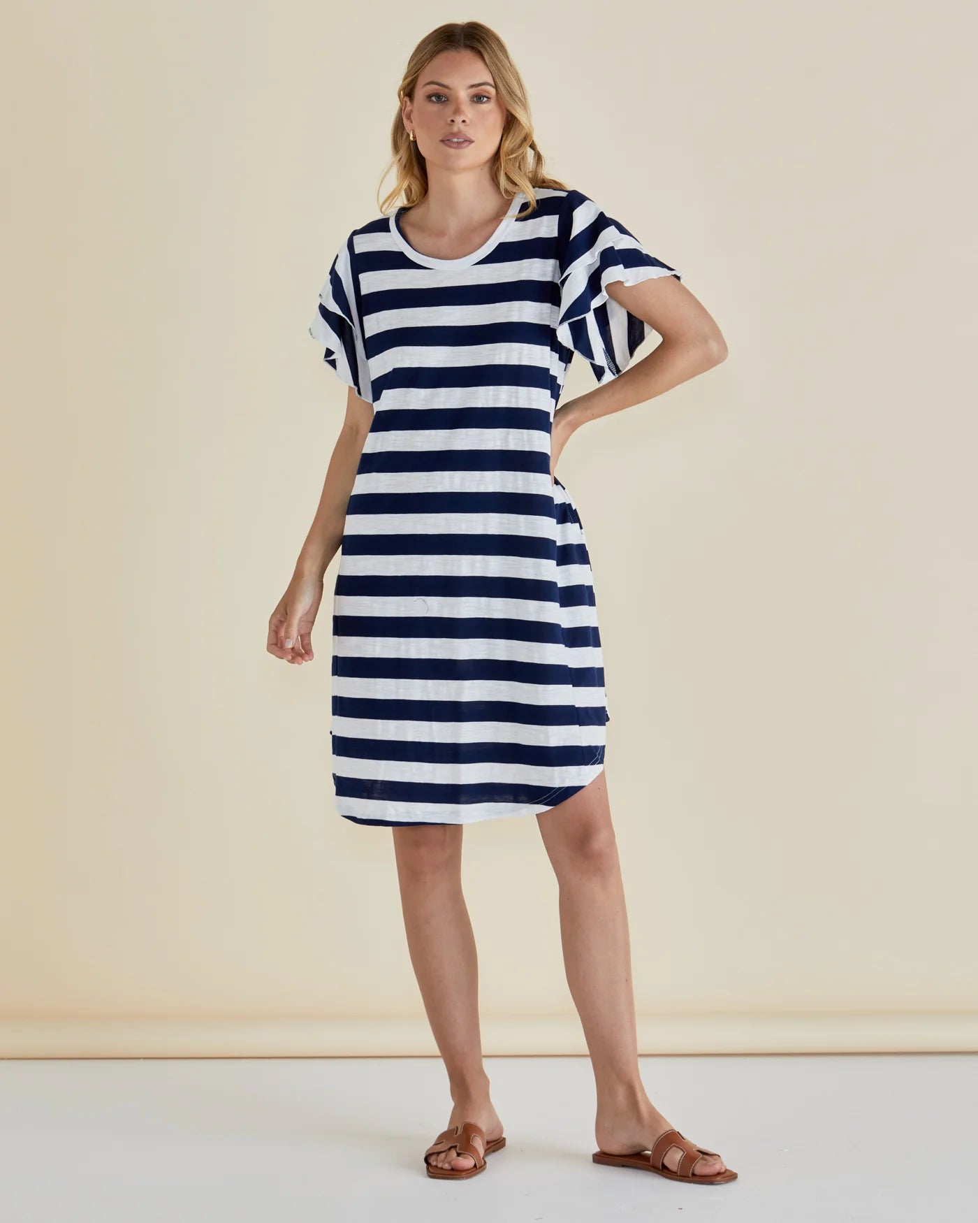 Looking for a feel-good outfit with a playful twist? The Sydney Tee Dress is all charm and comfort, with soft ruffle sleeves, a curved hemline and handy pockets that make everyday styling a breeze. Made from 100% cotton, it’s the kind of dress that’s ready for spontaneous coffee runs, weekend fun, or just feeling fabulous at home.
