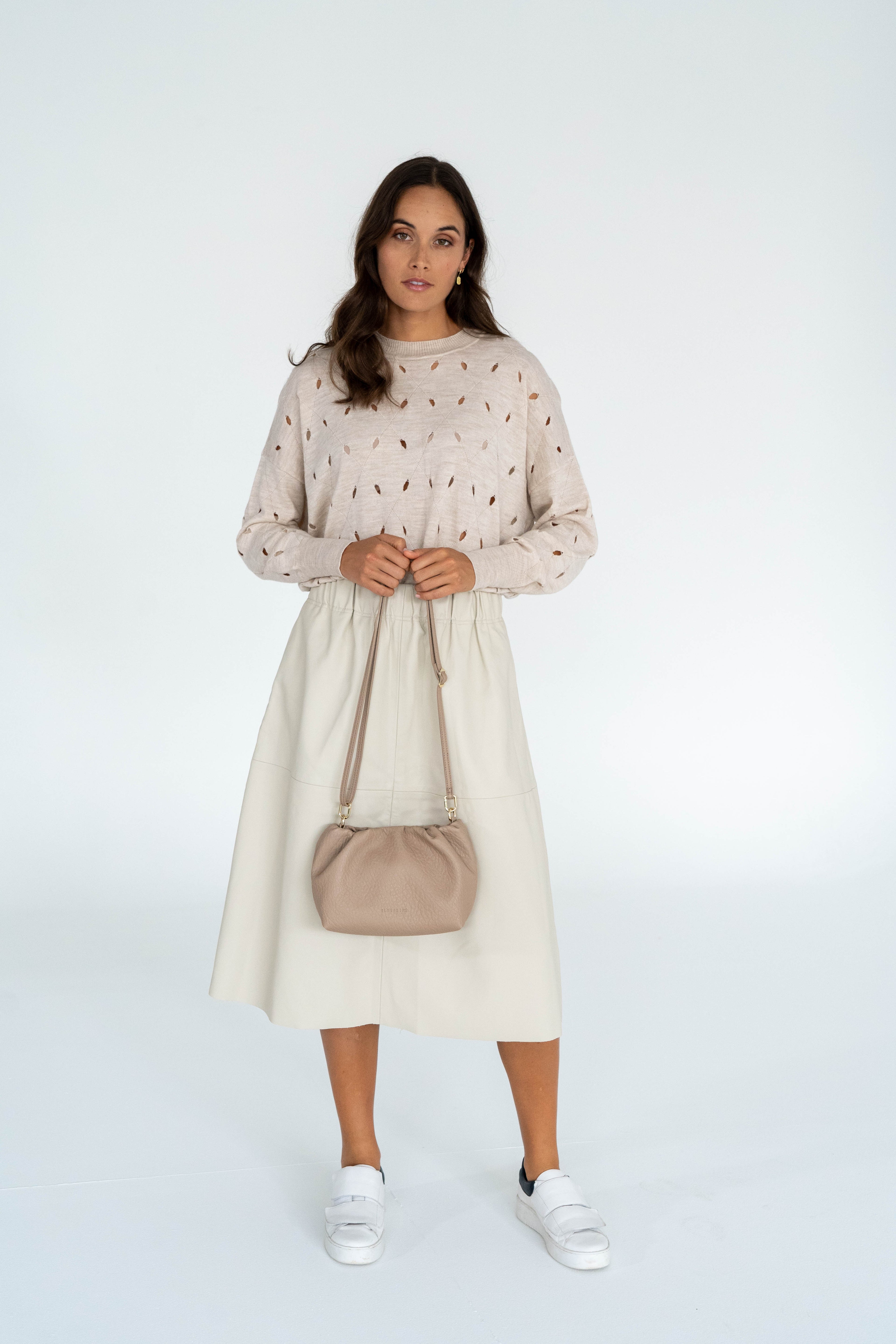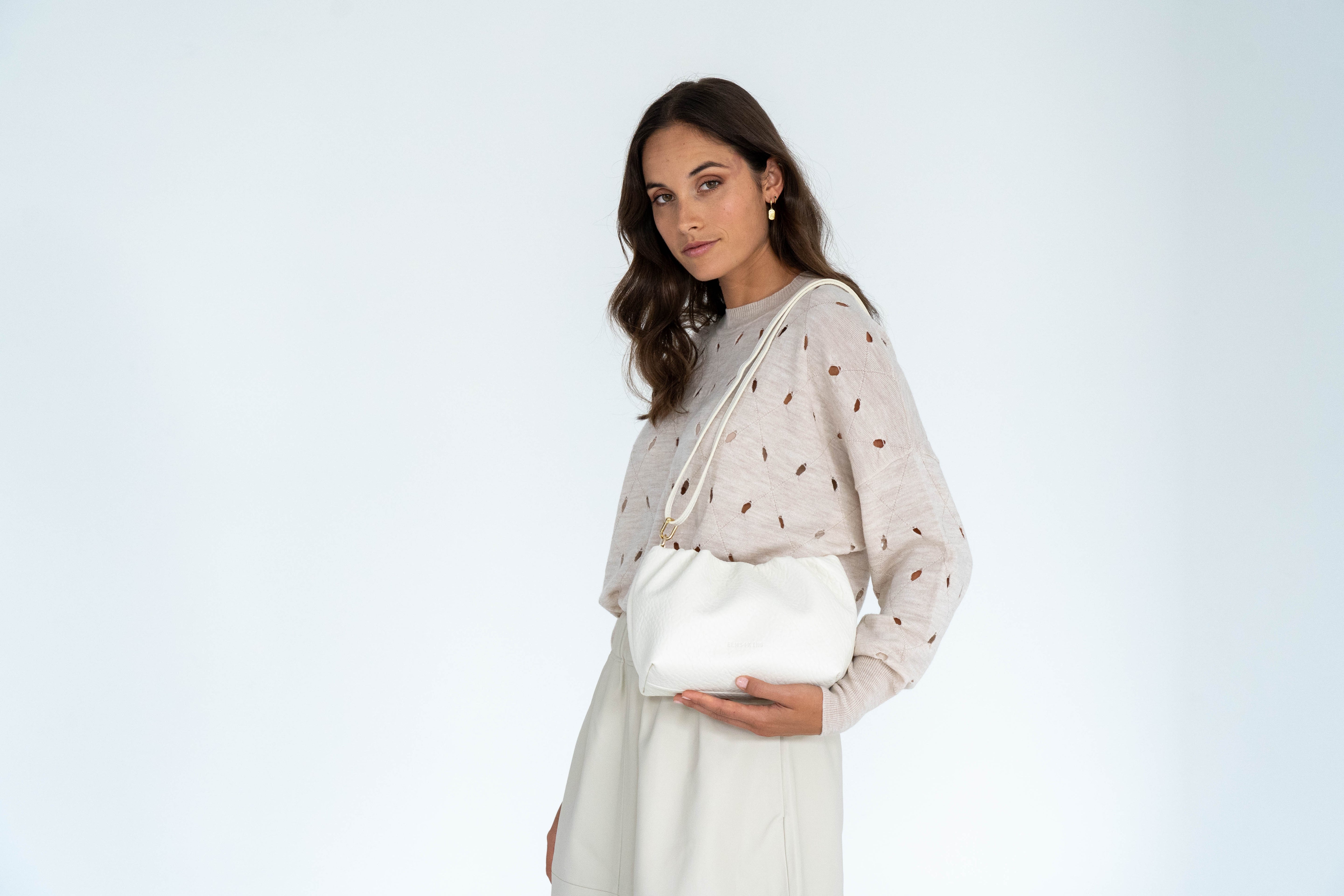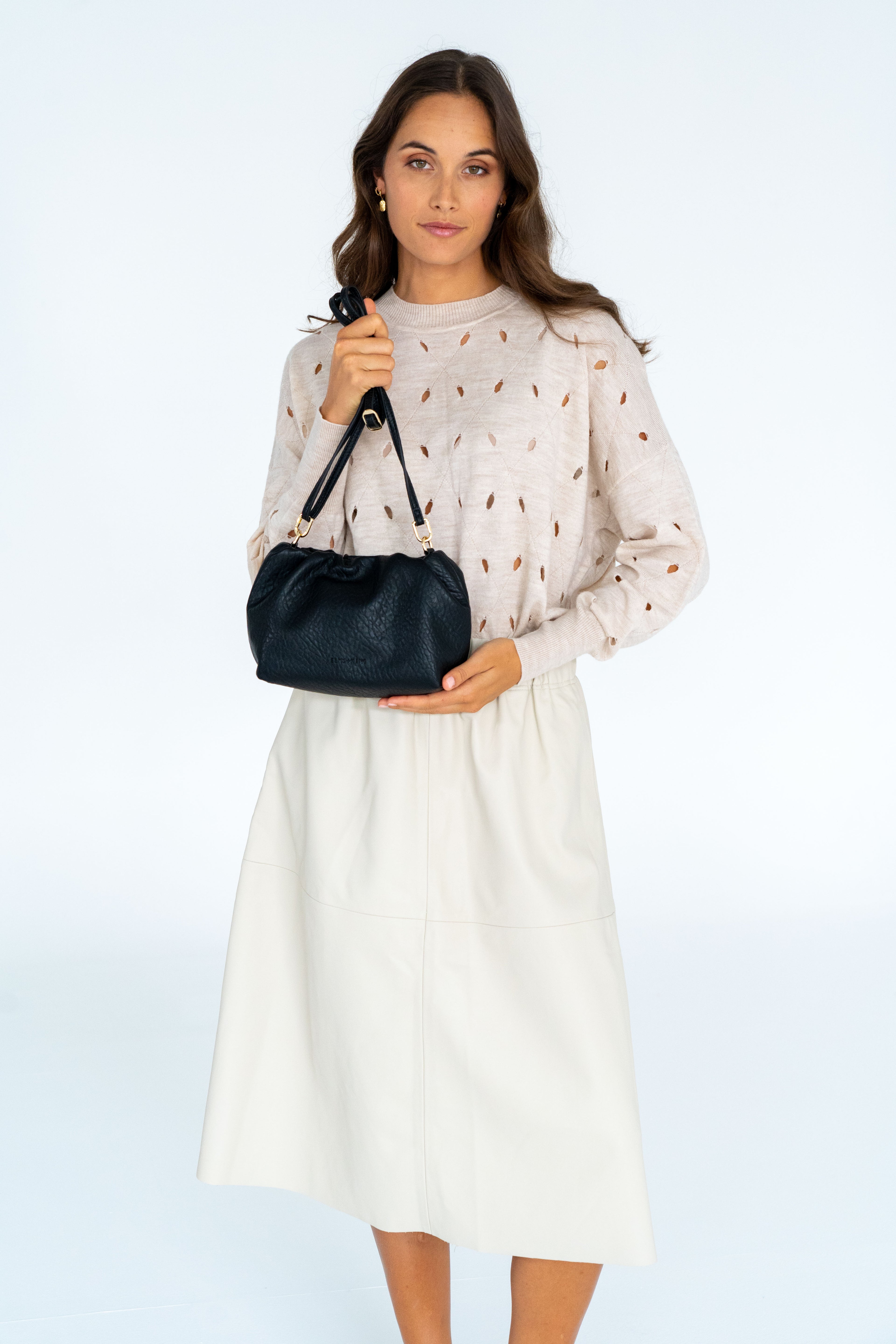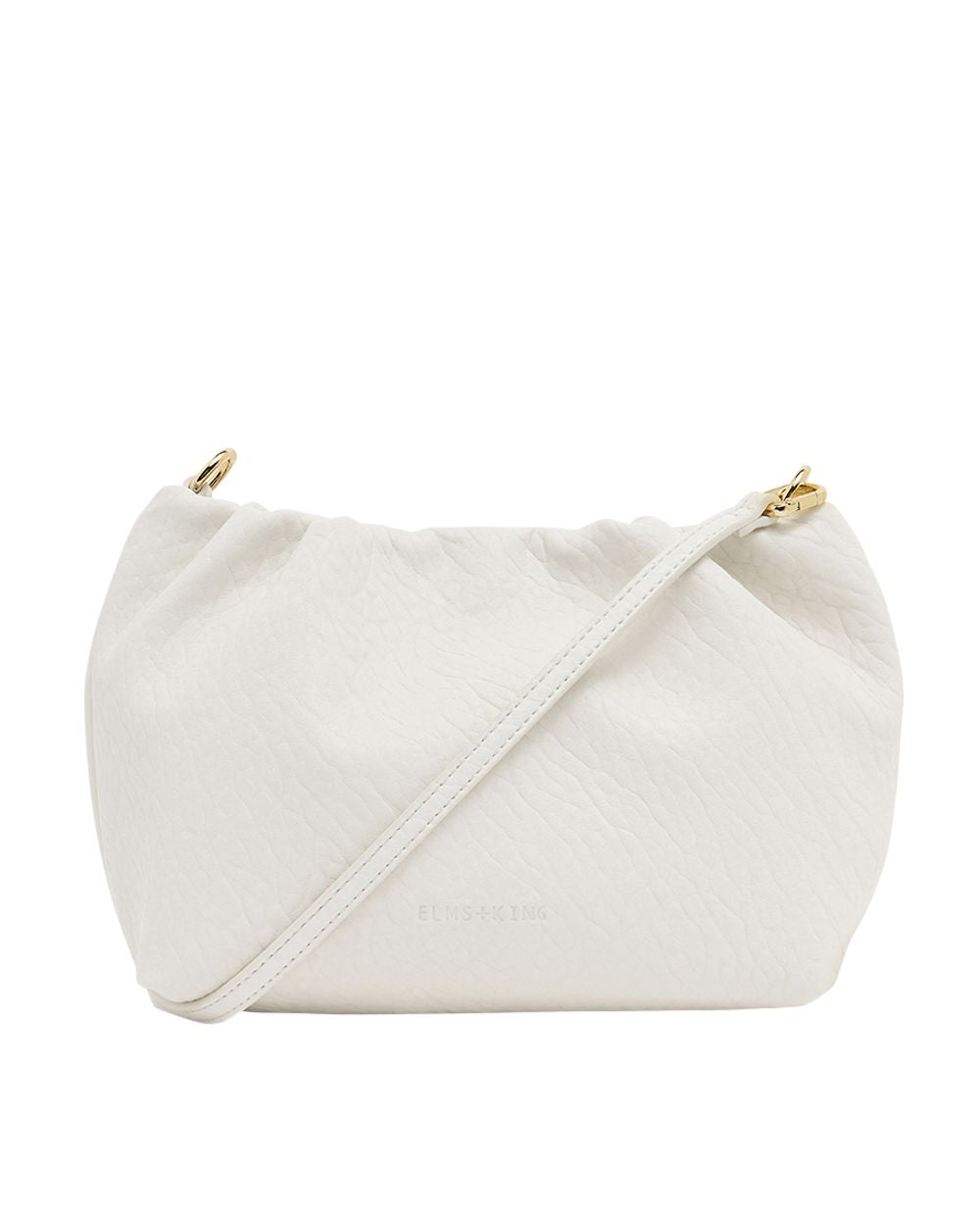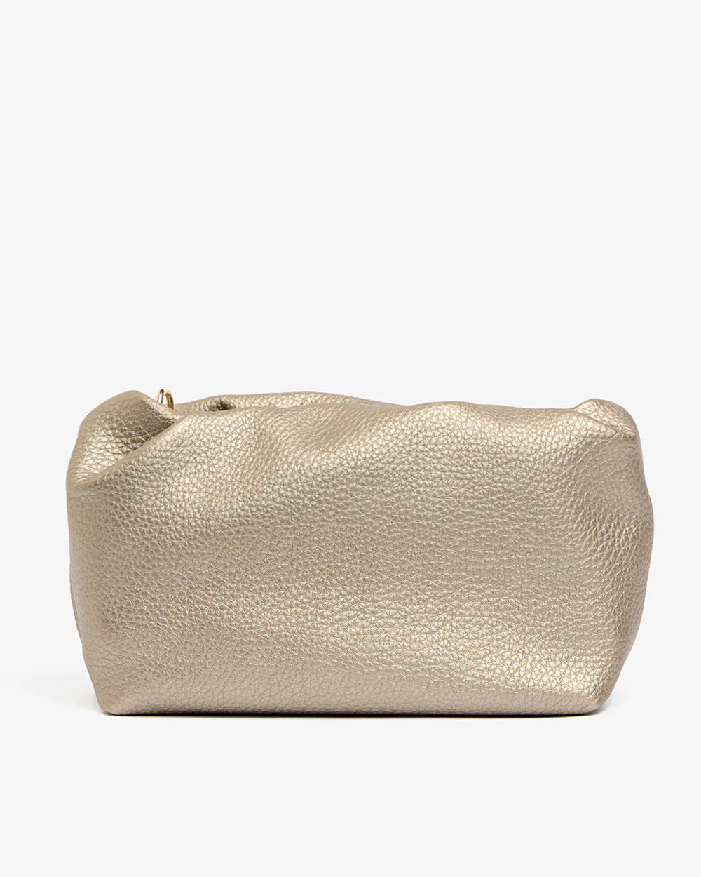 The Elms + King Monty Bag is made from premium recycled PU and features a pillowy body construction. The Monty can be carried as a clutch or worn using the removable shoulder strap. The bag features a hidden mag closure and opens to reveal an ample centre compartment with a PU trimmed zipper pocket.