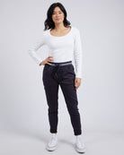 The Margo Jogger is that perfect mix of relaxed comfort and everyday polish. Crafted in a stretch hybrid denim, this slim leg style feels soft and flexible while still giving you that structured, put-together look. The ribbed waistband with sporty stripe detail adds a fun twist, making these an easy favourite for busy days when comfort really matters.