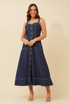 Turn heads in the effortlessly cool Riviera Denim Dress — a modern classic that’s equal parts stylish and comfortable. With its flattering sweetheart neckline, button detailing, and adjustable straps, this denim favourite is made for days when you want to look put-together without overthinking it.
