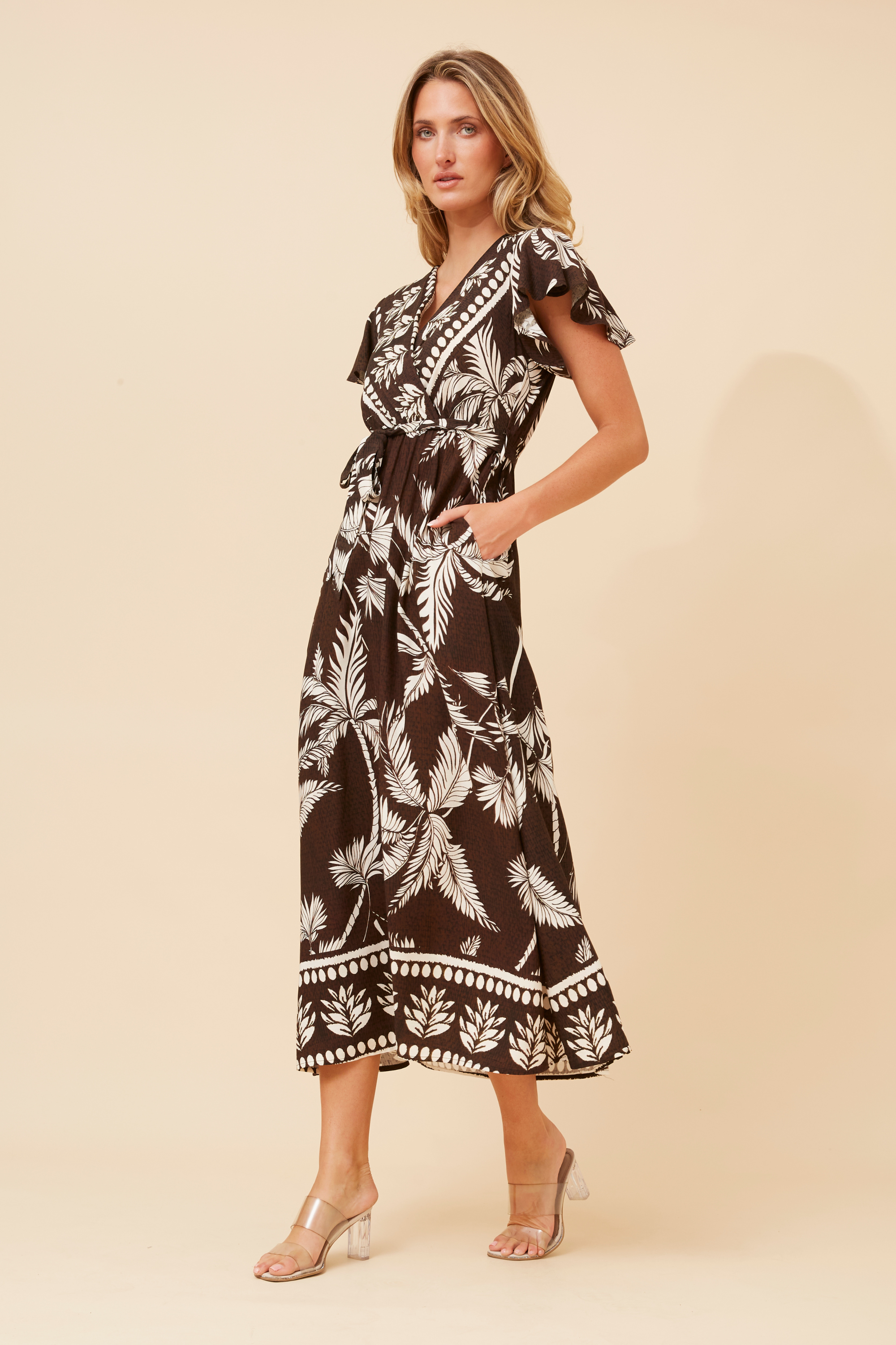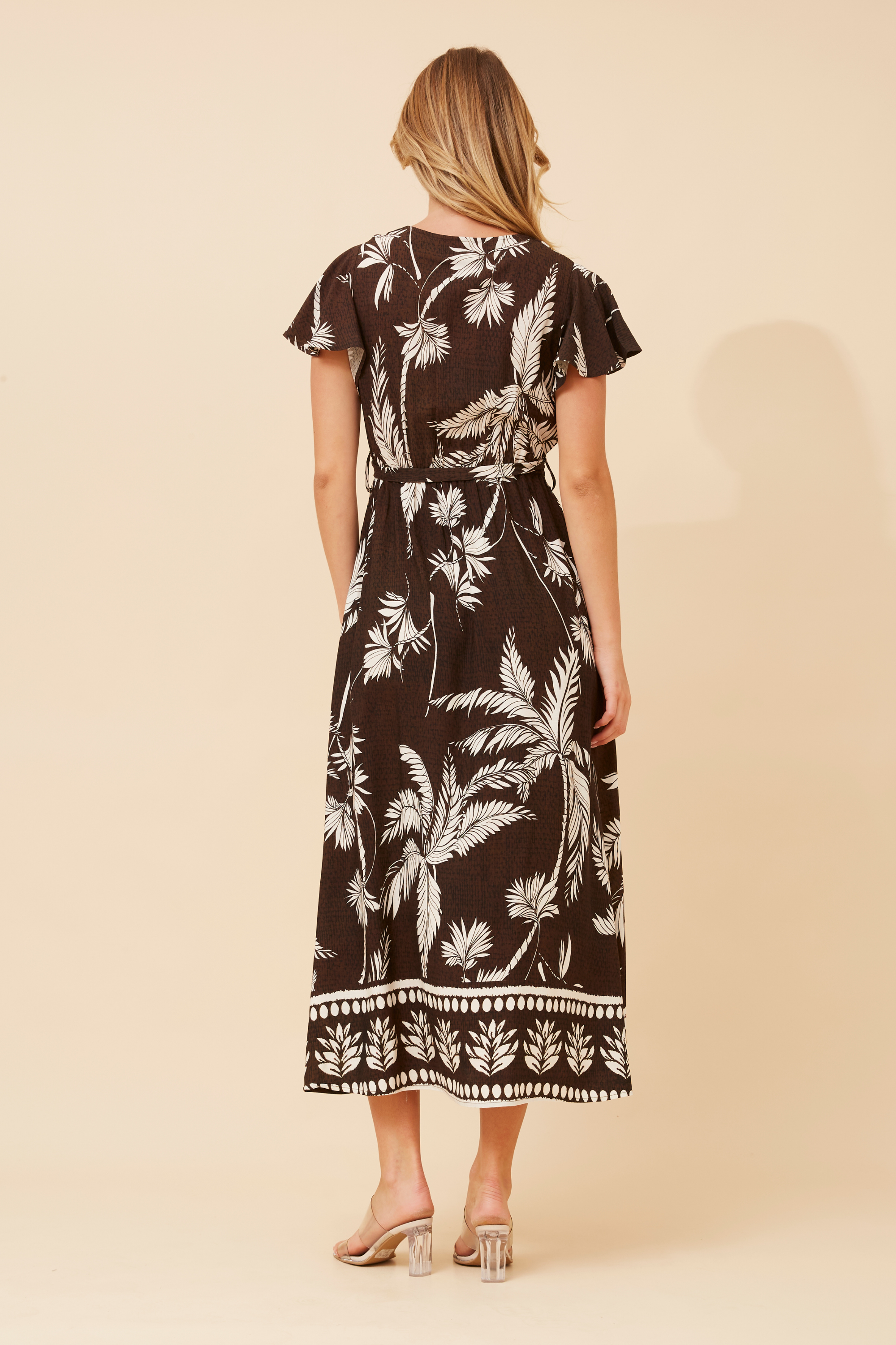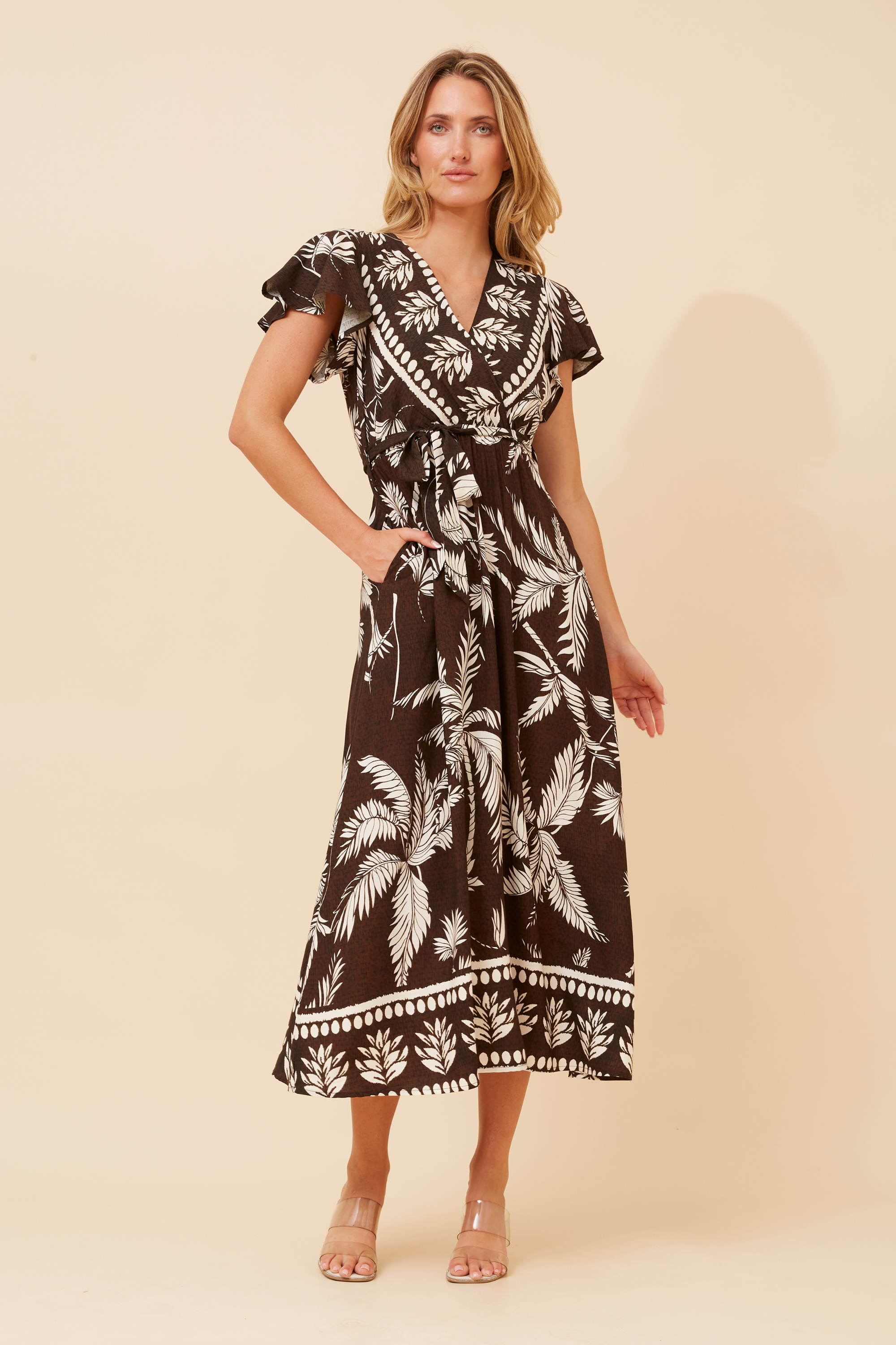Step into effortless style with the Laguna Palm Dress, featuring a rich chocolate base adorned with a stunning cream palm print. The cross-over neckline adds a touch of elegance while keeping the fit relaxed and flattering, making it a versatile pick for everything from weekend brunches to sunny coastal strolls.