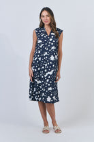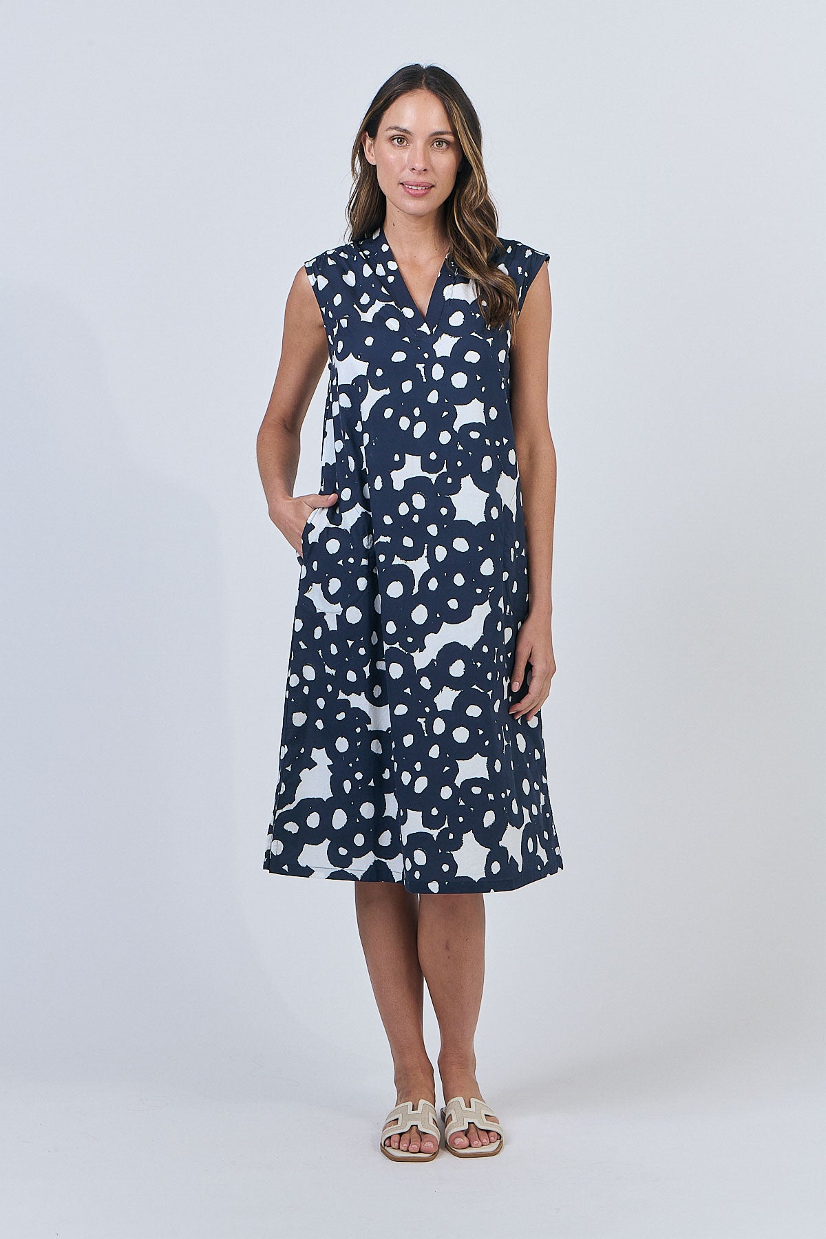 Easy, breathable and oh so flattering, this sleeveless cotton dress from Naturals by O&J is made for warm days and relaxed outings. The inky barnacle print adds a touch of coastal charm, while the soft 100% cotton keeps you cool and comfortable all day long. With its gentle V neckline, knee length cut and handy pockets, it’s the perfect blend of style and practicality.