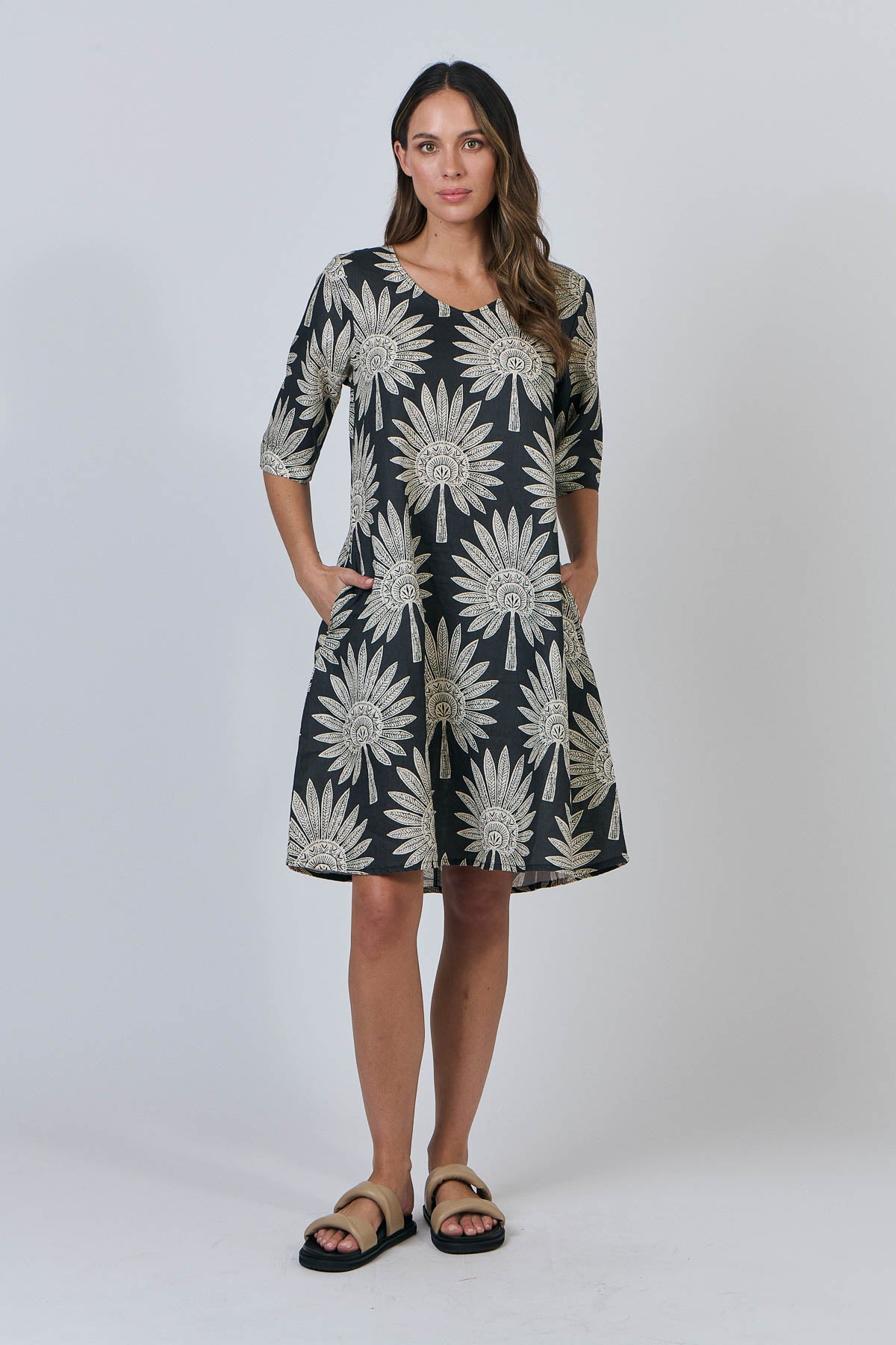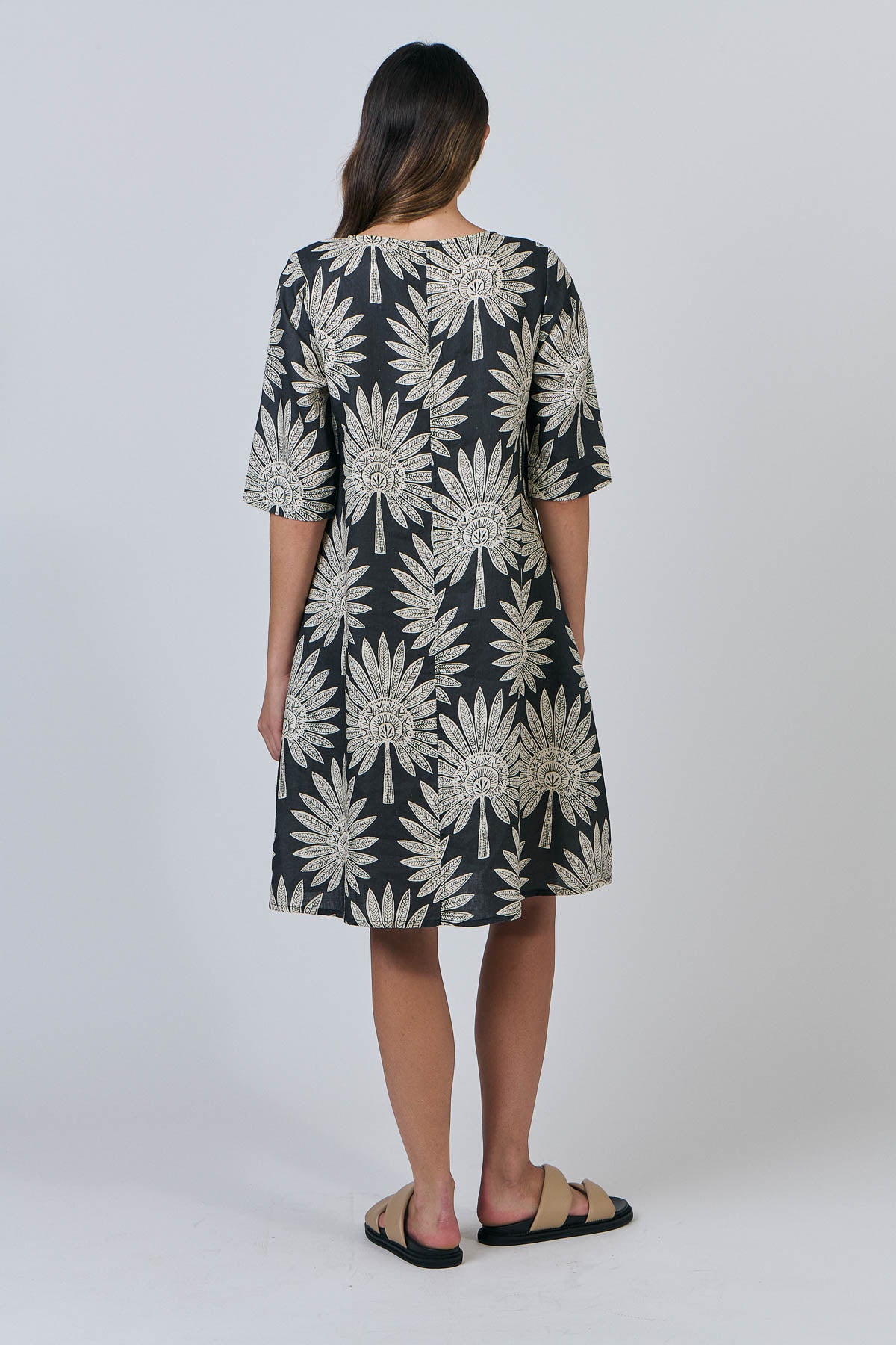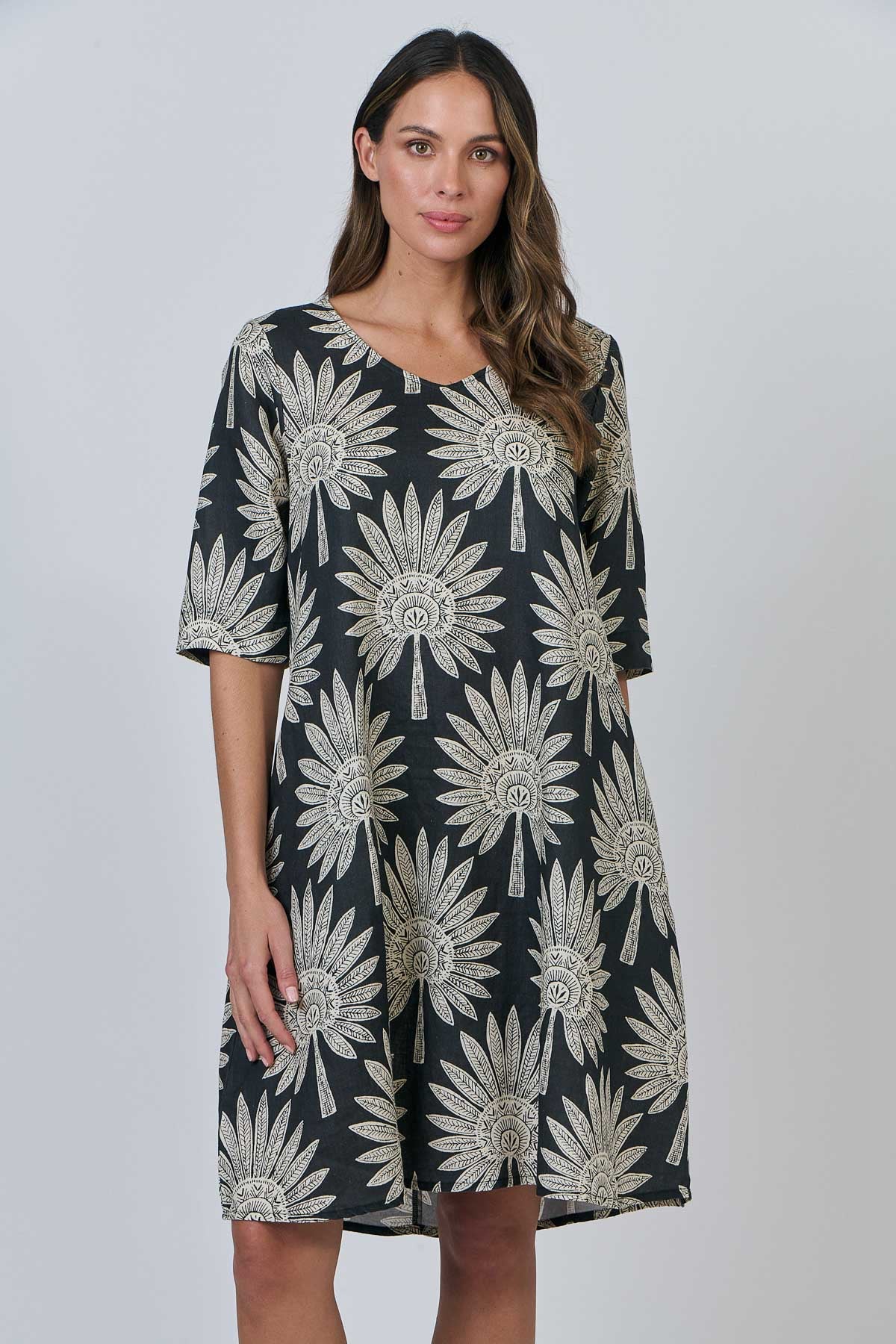 Naturals by O&J Linen V Neck Dress - Date Palm