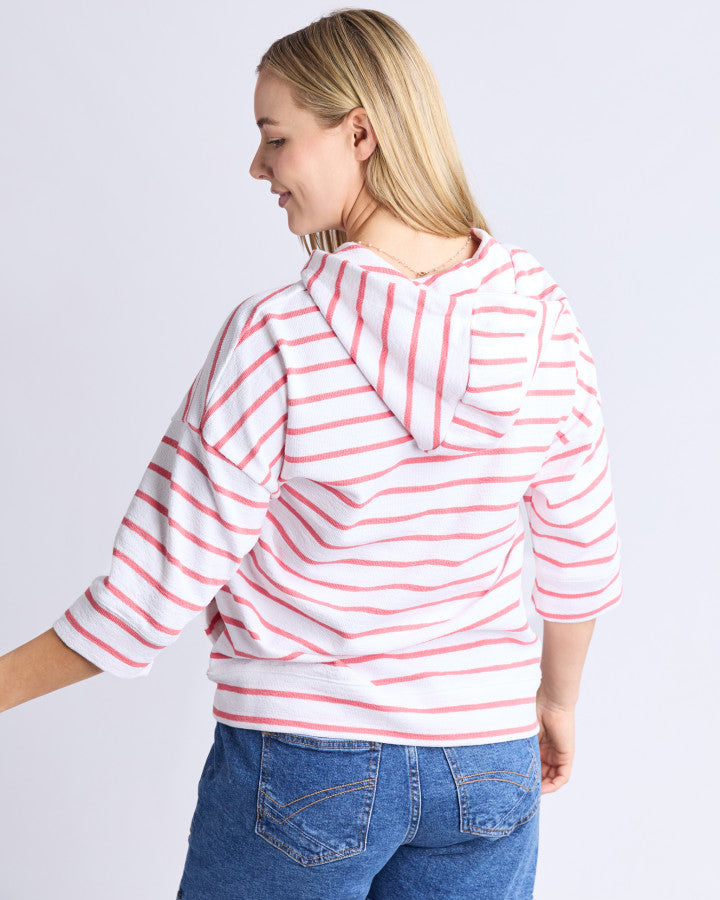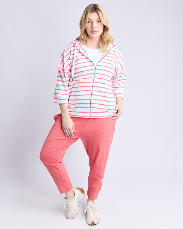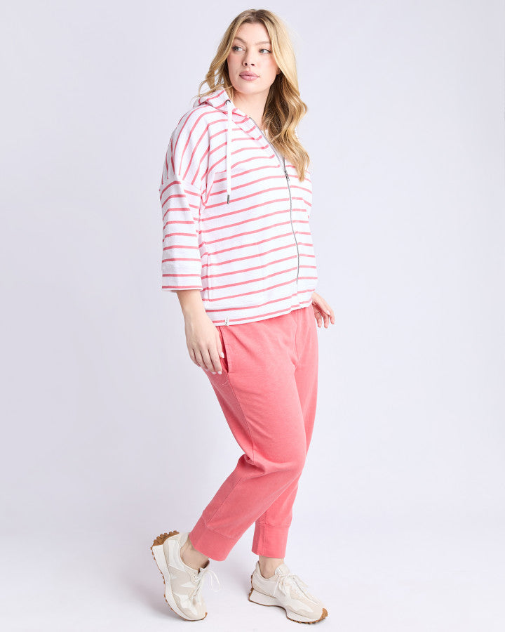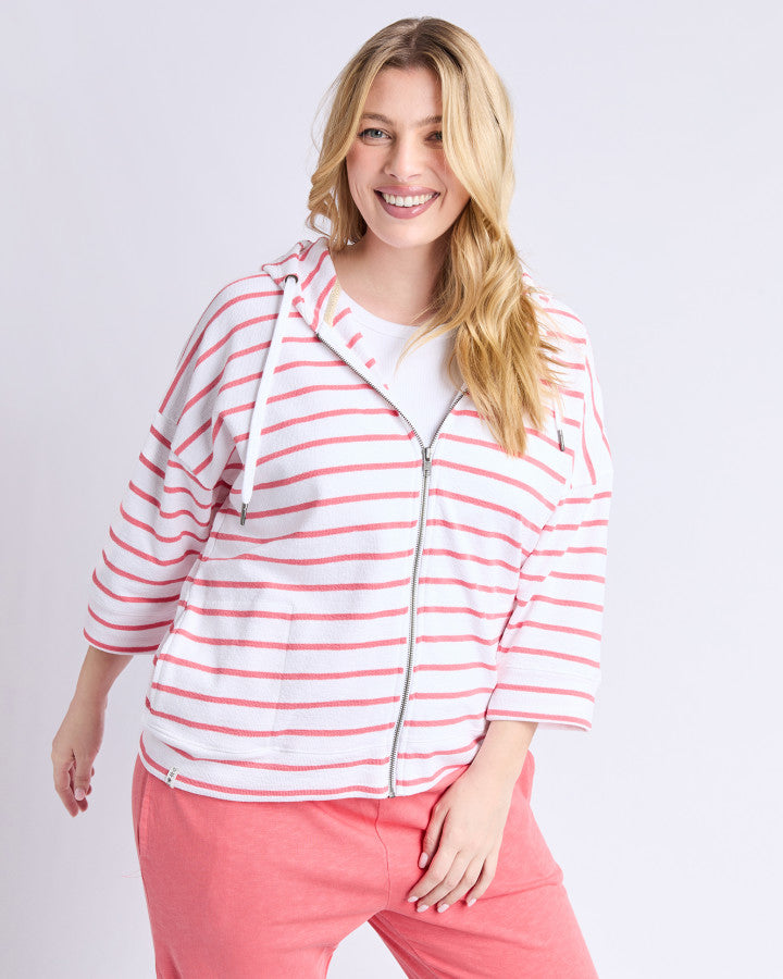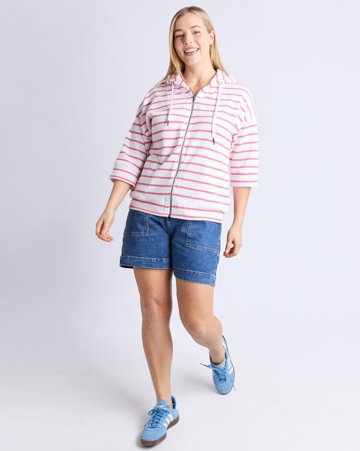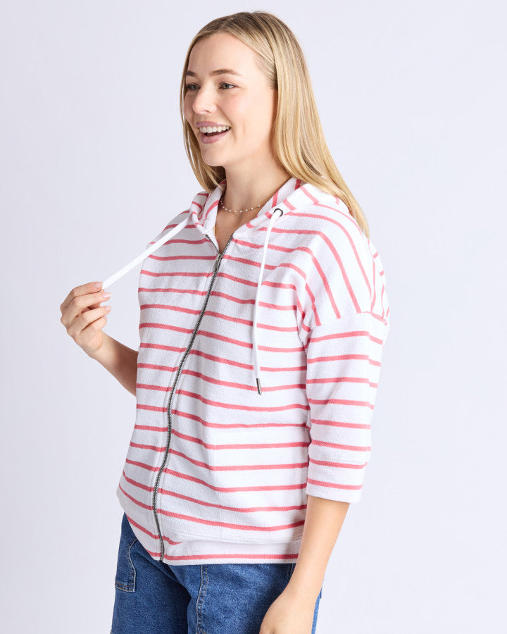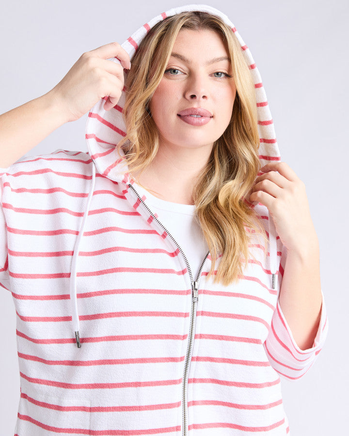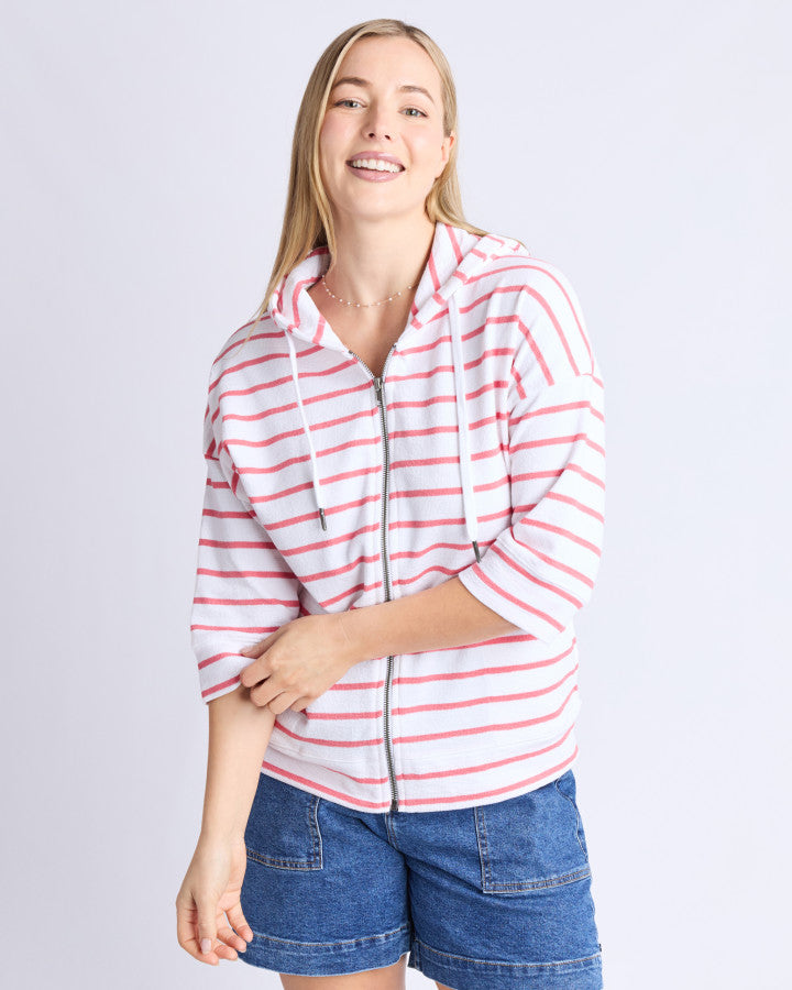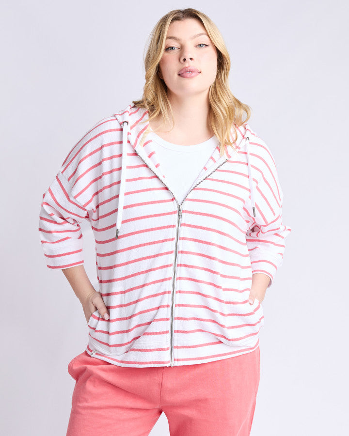 Beachy Zip Hoodie - Coral Stripe