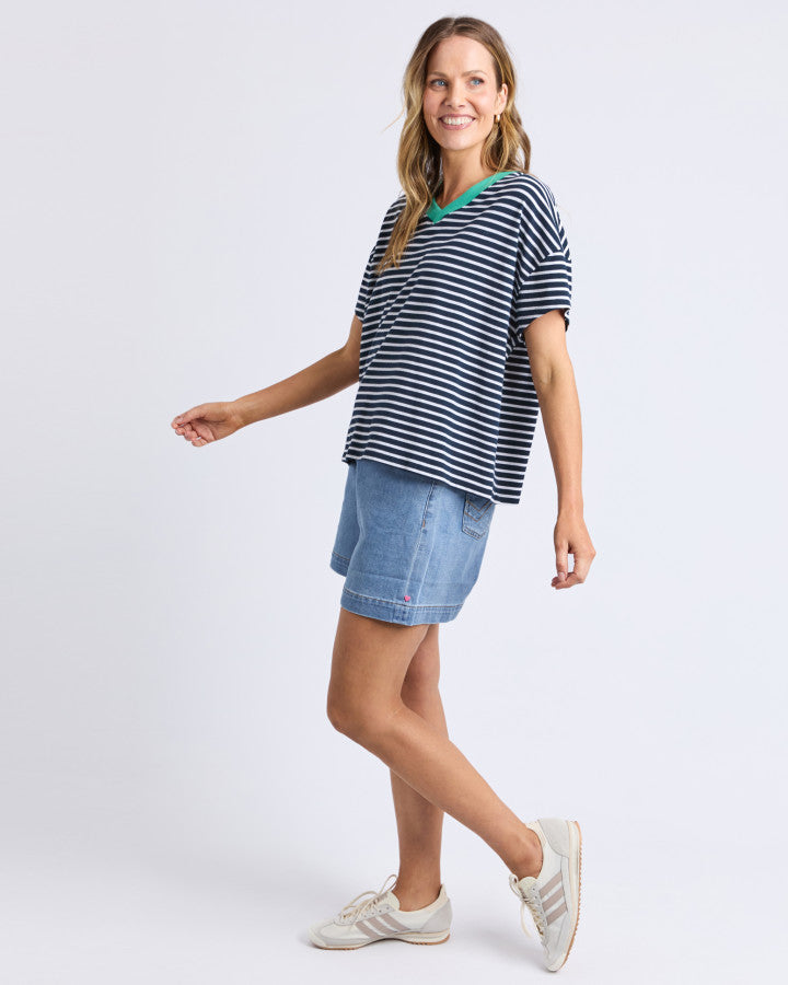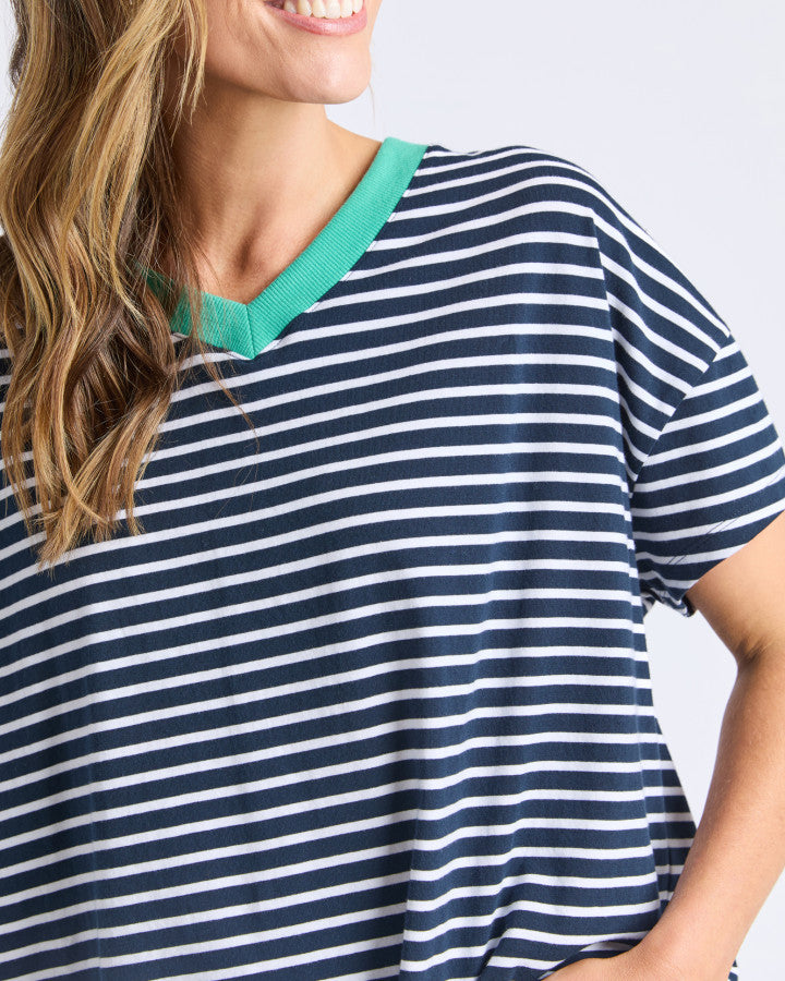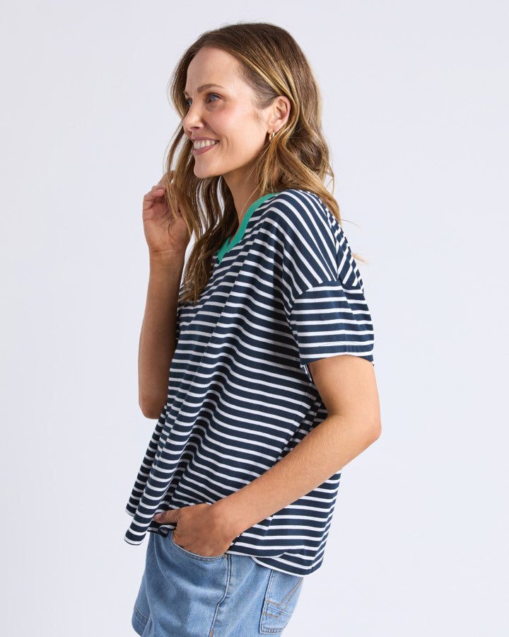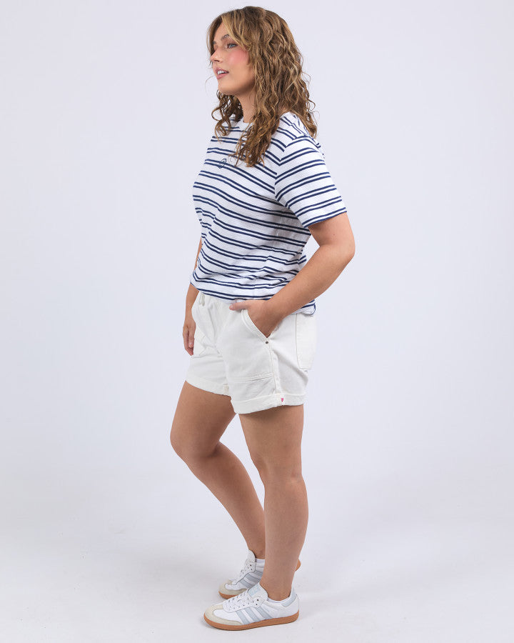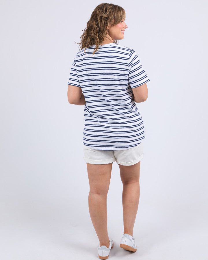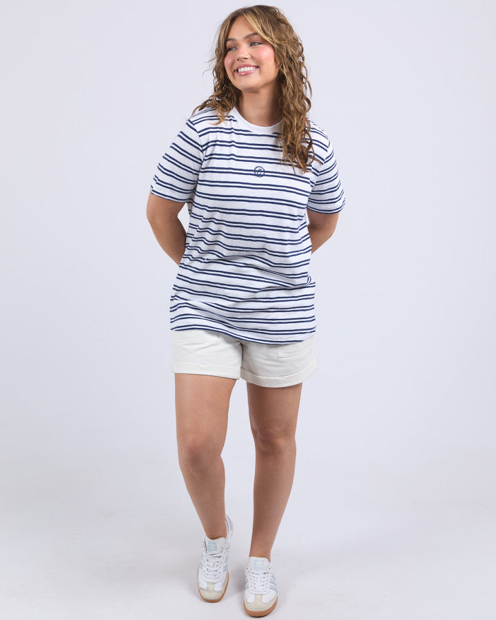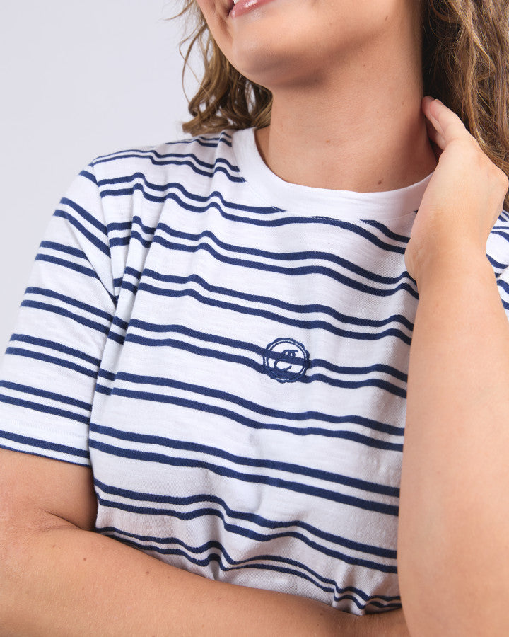 Brio Tee - White Navy Stripe