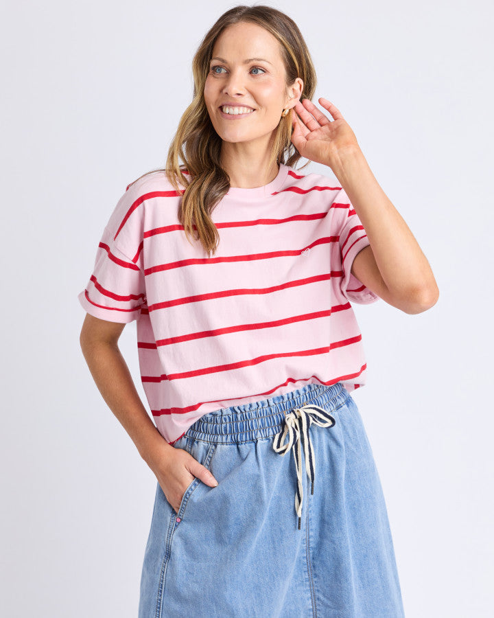 Halli Stripe Tee - Pink Lady