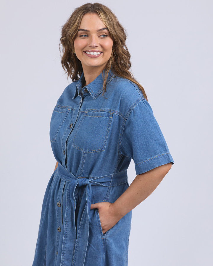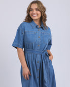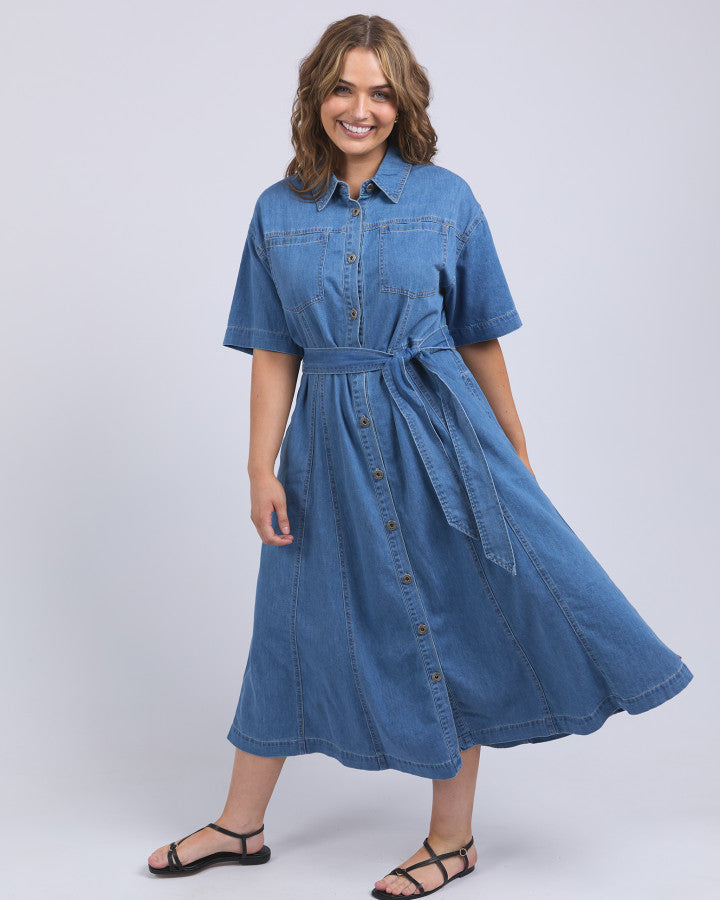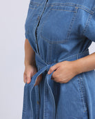 Meet your new denim go-to — the River Denim Dress is all about effortless style with everyday versatility. This long-line shirt dress features a classic button-through front and adjustable waist tie, giving you the freedom to wear it relaxed or cinched in. Made from sturdy rigid cotton denim, it brings a timeless charm that works for all seasons and all kinds of days.