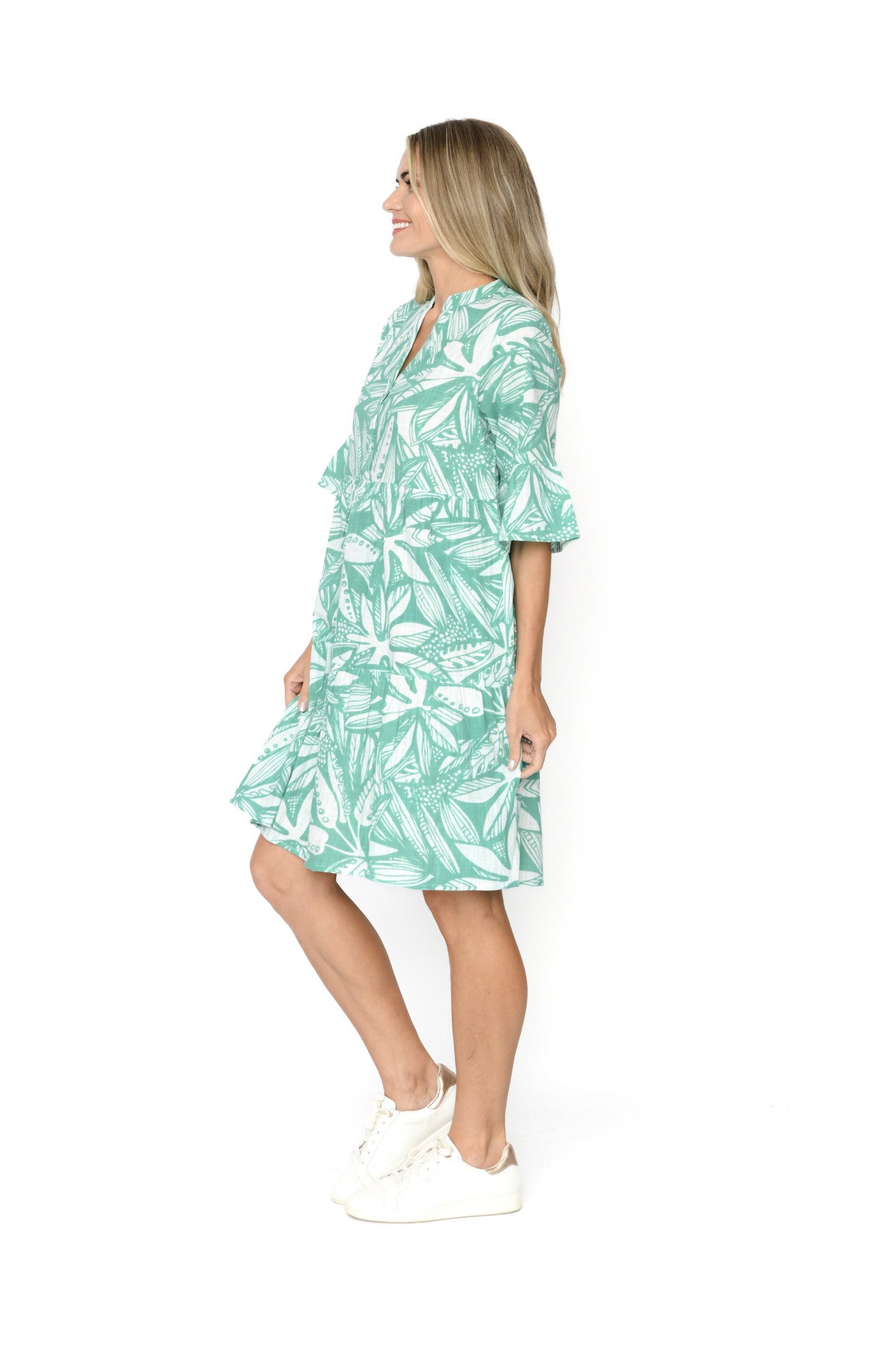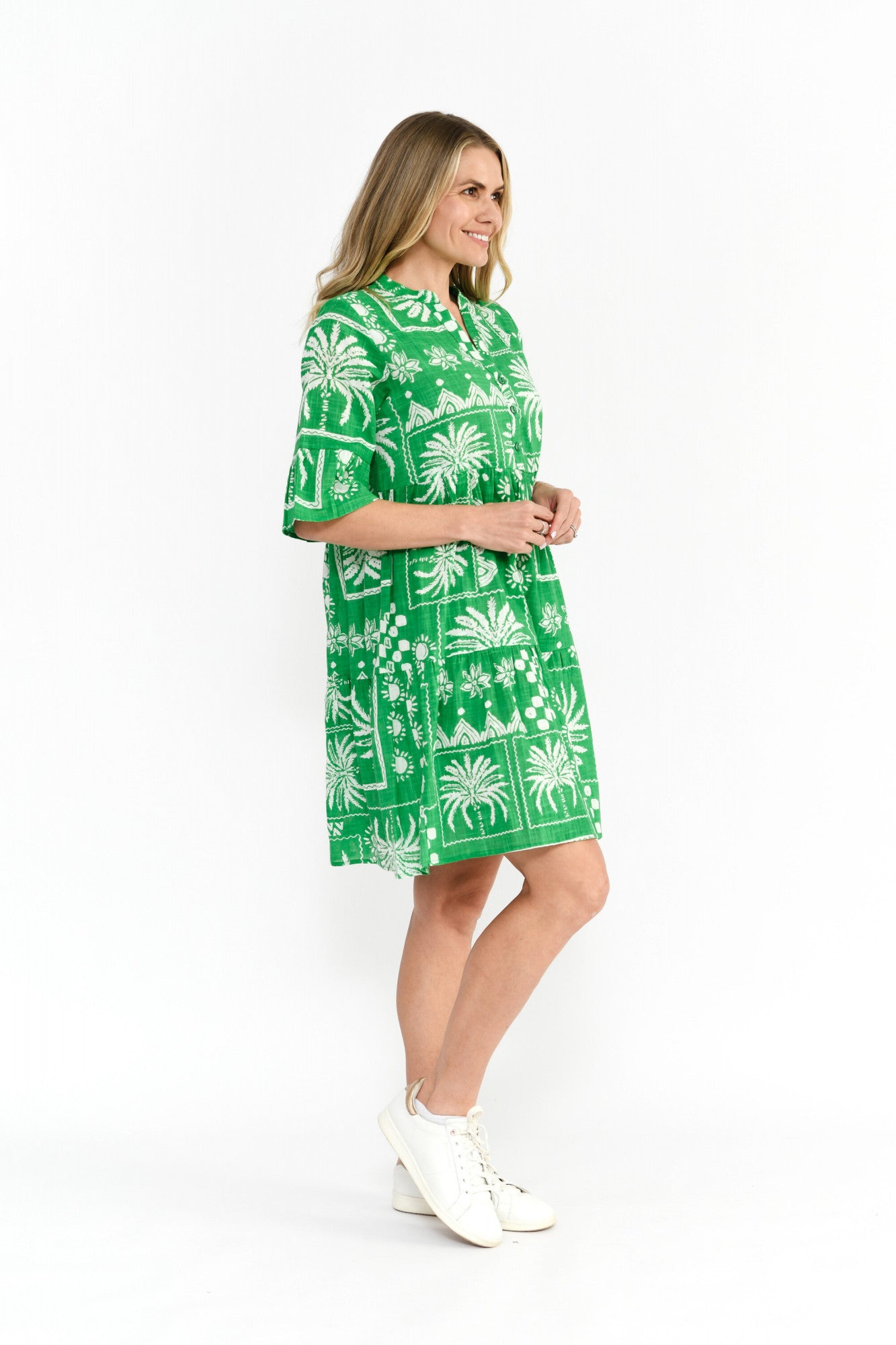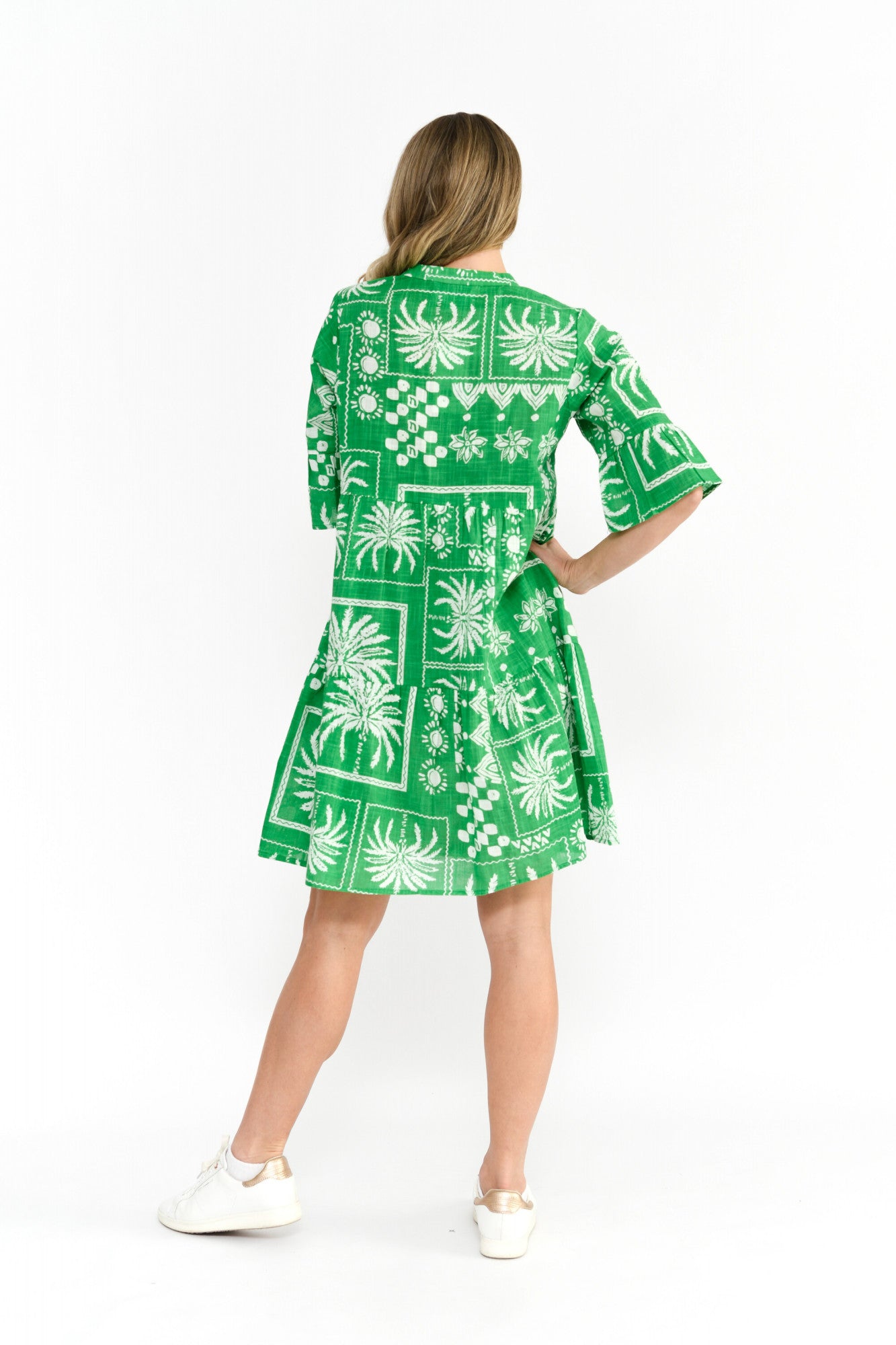 Maya Button V Neck Layer Dress - Mono Patch Green