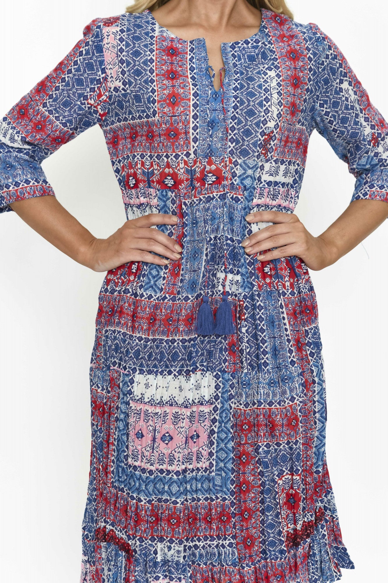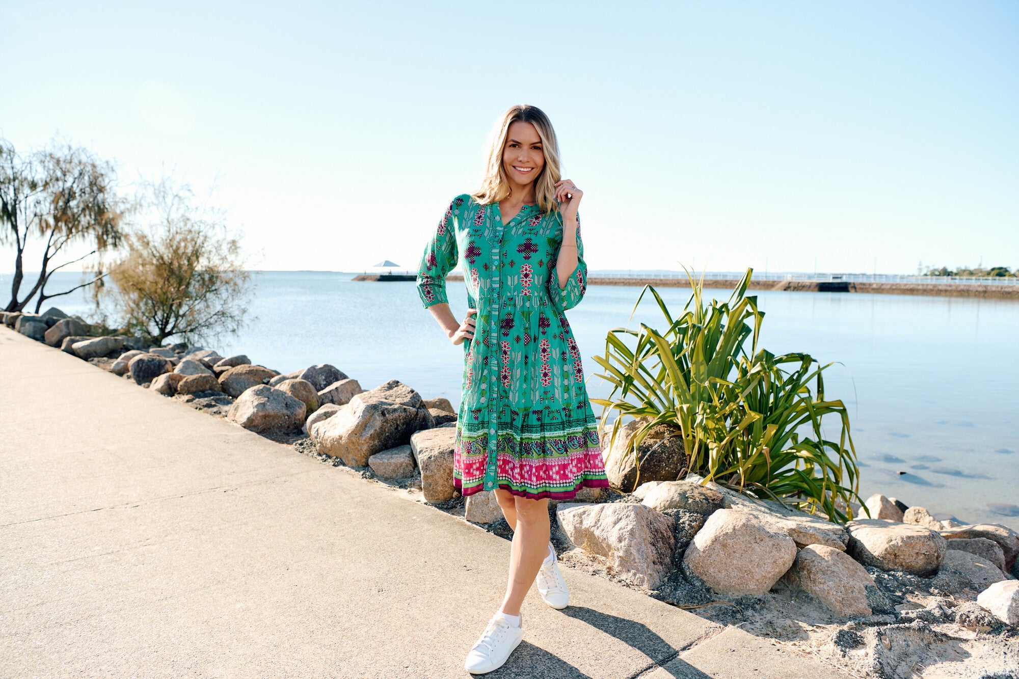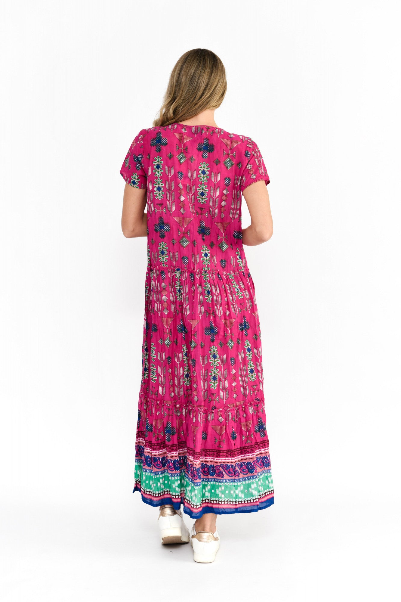 Maya Button V Neck Layer Dress - Mono Patch Green