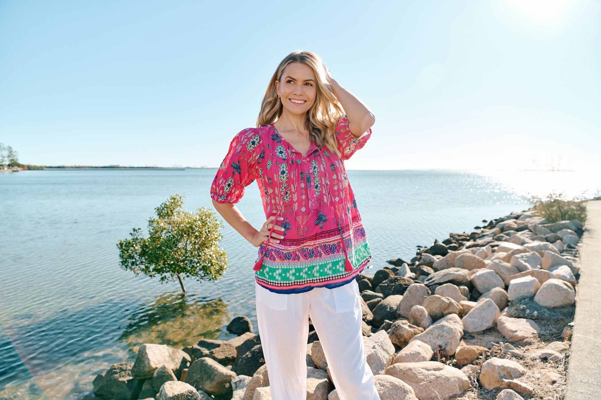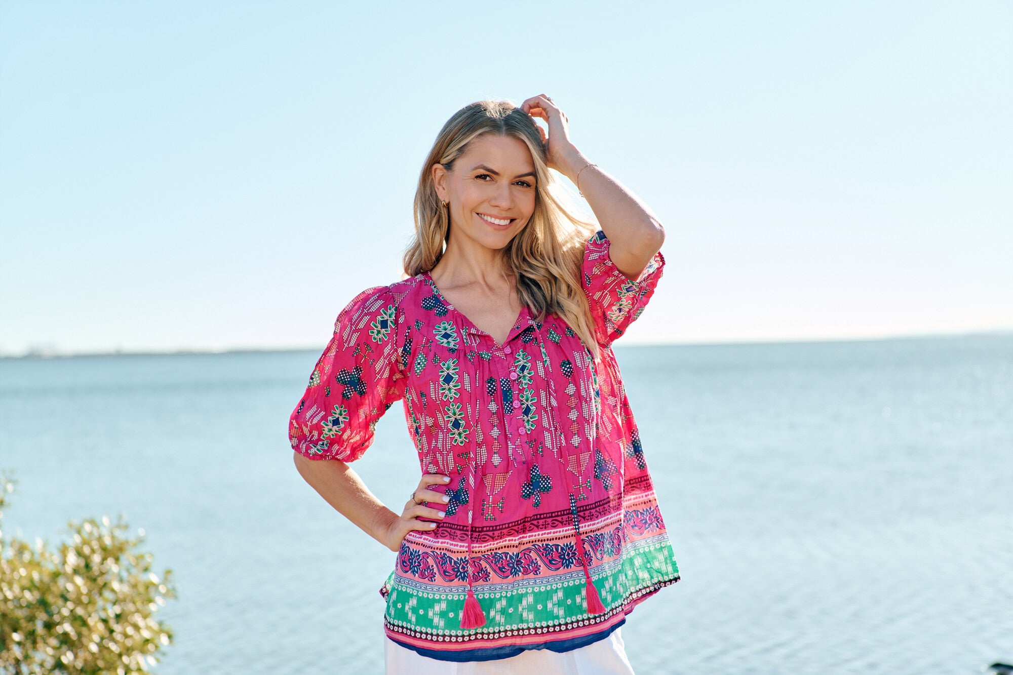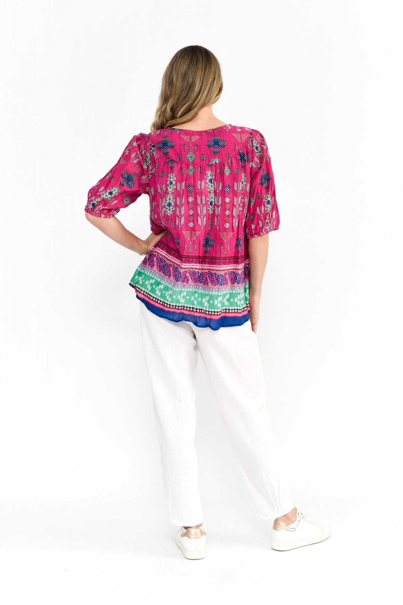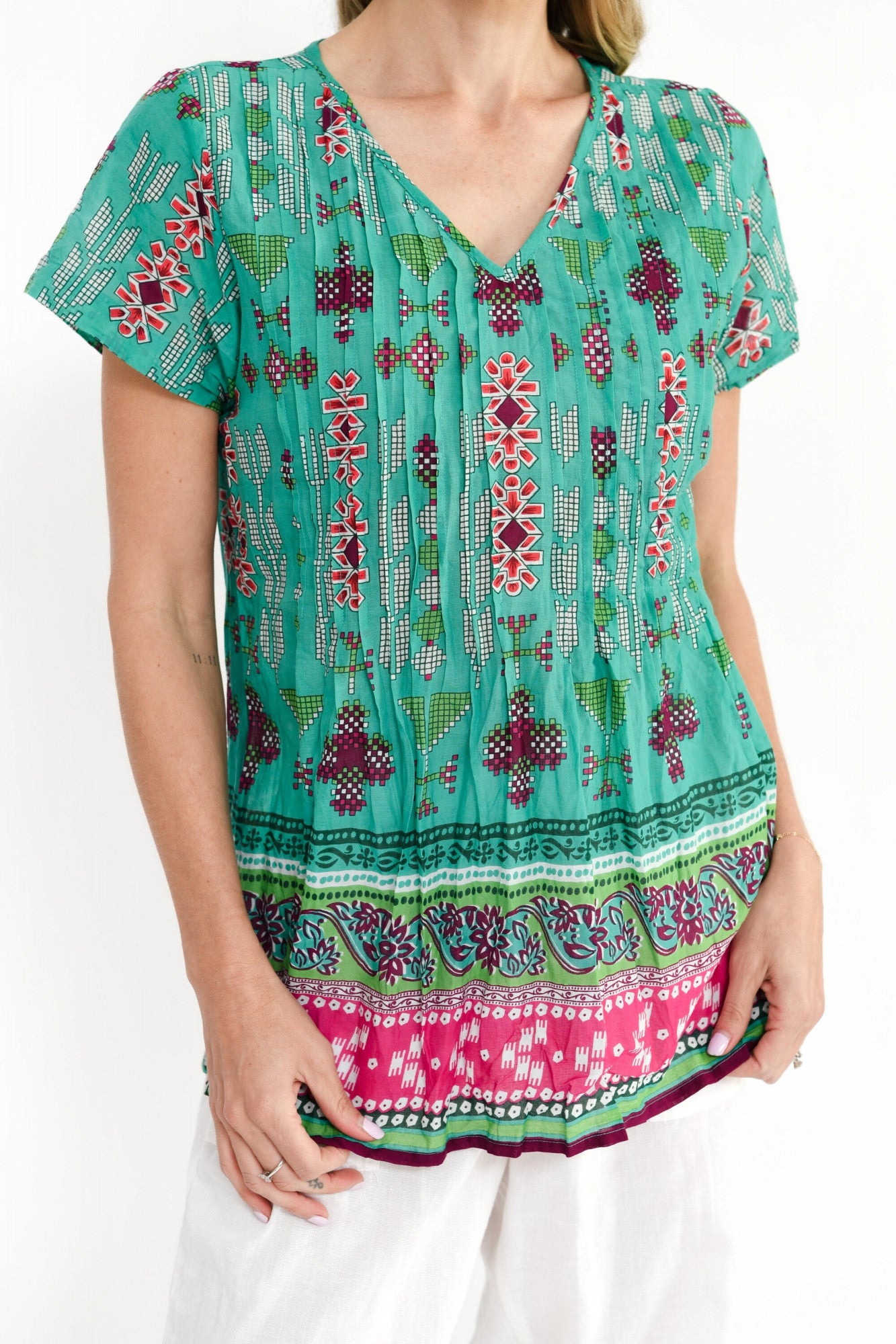 Kayla Cotton Blouse Short Sleeve - Aztec Border