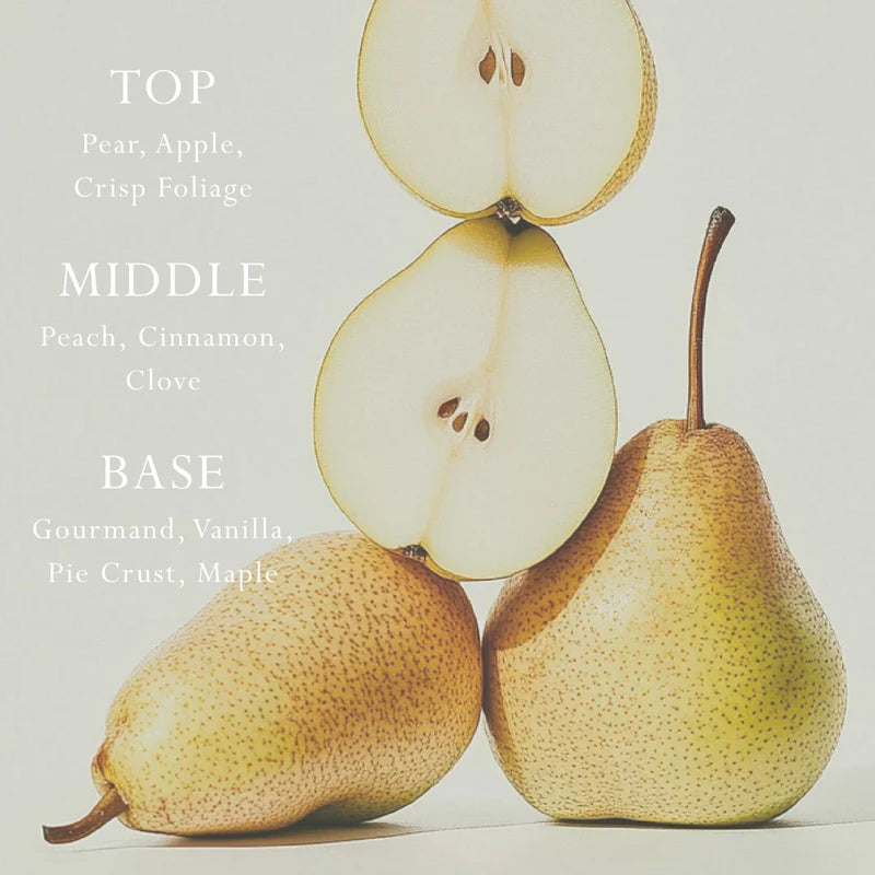 - Scented with fresh pear, fruity peach, and vanilla notes