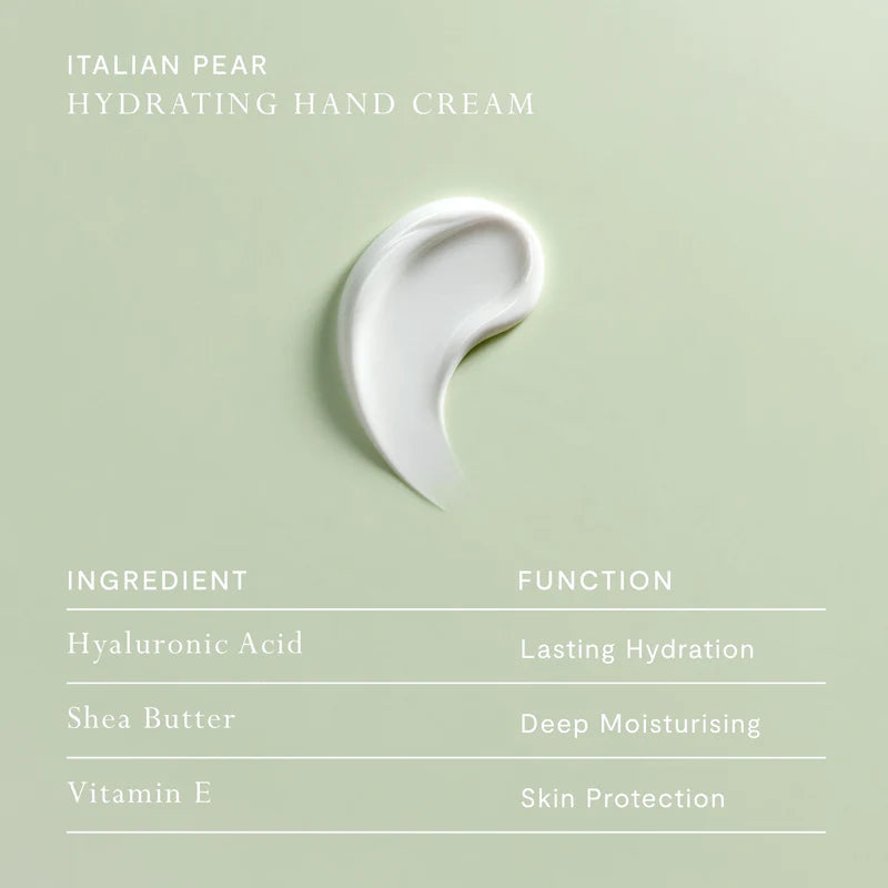 Enriched with Pear Extract and Vitamin E, this nourishing hand cream indulges your senses while deeply moisturising your skin. Its luxurious blend of Cacao Seed and Shea Butter delivers intense hydration, softening the skin’s appearance. Sesame Seed Oil and Glycerin richly moisturise, and Hyaluronic Acid ensures lasting hydration, leaving your hands silky-soft and delicately scented.