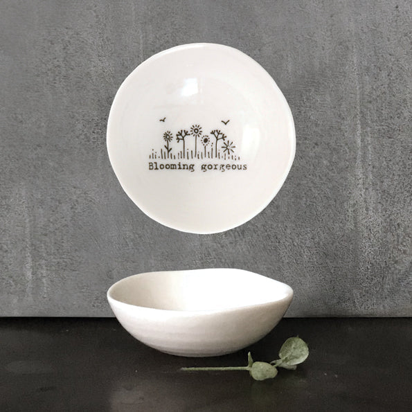 Wobbly porcelain bowls - small are sweet little porcelain bowls with a vignette in the base and beautiful saying. Perfect for holding the likes of rings, small trinkets and various other items.