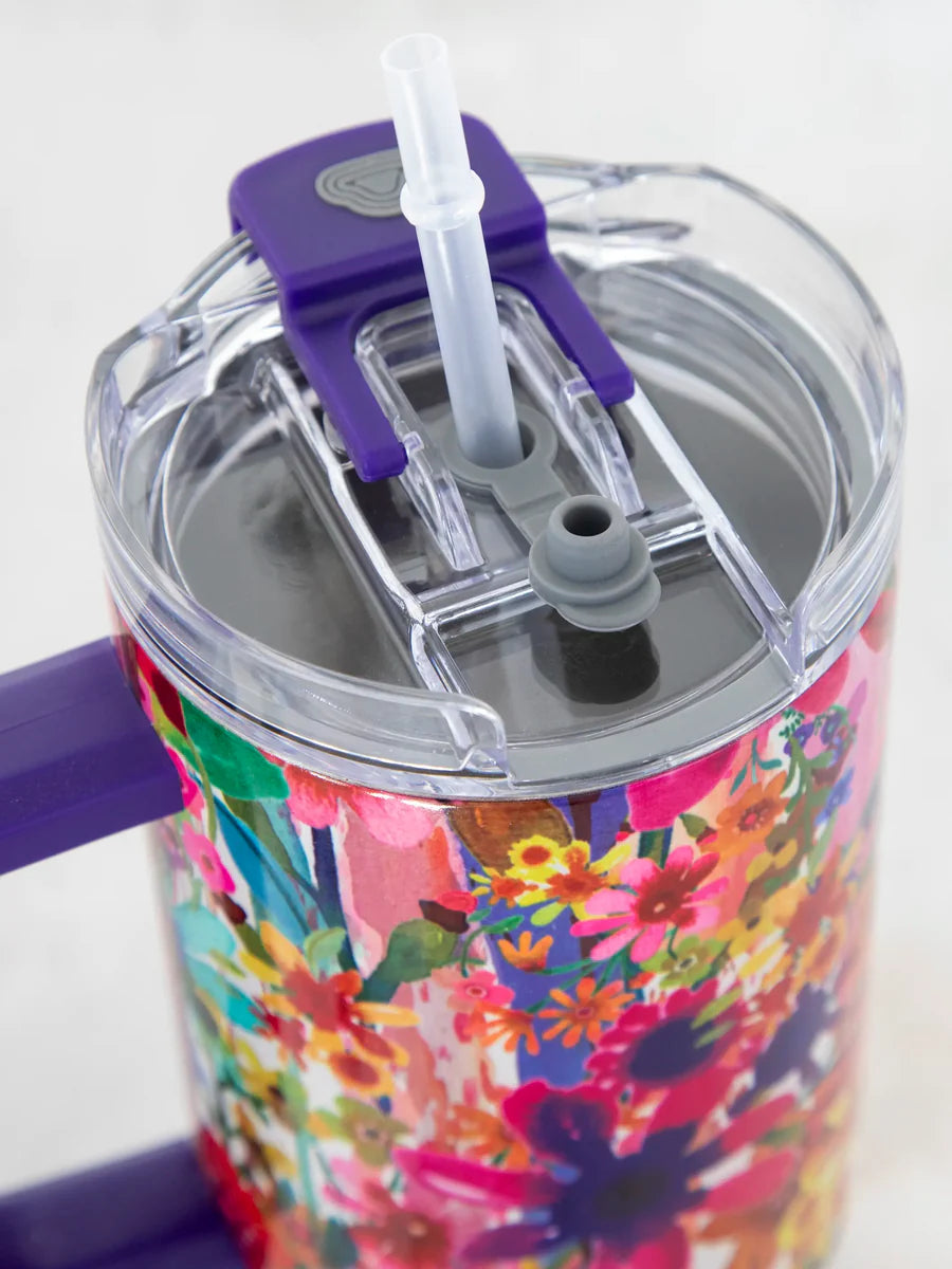 Stay plenty hydrated with our Mega 40 oz Tumblers! Made of double-walled stainless steel, these tumblers will keep your drink cold (or hot) for up to 12 hours! Collect them all in our bright and colorful finishes like this one in our bright floral garden print! We designed them to have a large handle so you can easily carry this mega tumbler anywhere and the 3-inch wide base fits most car cup holders so you can bring it along for a quick drive into town to road trips! It comes with a reusable straw and tight-sealing lid with two positions so you have the option to use the straw opening OR close that straw opening with the built-in seal and uncover the wide mouth opening. These tumblers also make great gifts for friends, family, teachers, helpers - anyone!