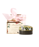 The petite box, decorated with the Marshmallow floral pattern is inspired by a classical beautiful English Rose Garden with a touch of Victoriana and gold foiled for a luxurious feel on textured linen paper. The round tin housing the balm is also printed with the same floral pattern and completed with the MOR Marshmallow emblem on the top.