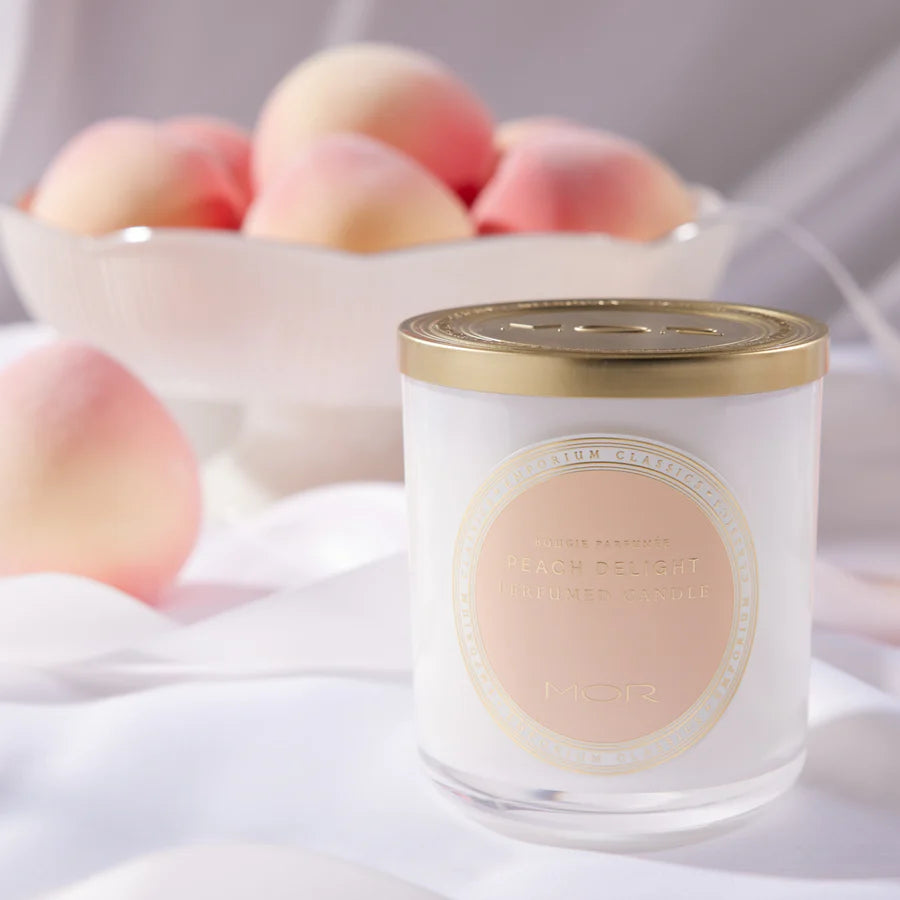 Indulge in the enchanting blend of Peach, Pear, and Lily of the Valley, evoking a fresh and fruity bloom. Gardenia, Geranium, and Rose Water unfold, weaving a tapestry of floral sophistication, while the Cedarwood and Sandalwood base is warm, woody and rich.