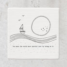 Lightly ribbed white porcelain coasters make an excellent gift or decoration for anywhere around the home. The underneath of the coaster has a white foam pad so it will not scratch or ruin your furniture!