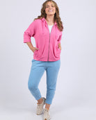 Easy, relaxed and ready for wherever the day takes you — the Beachy Hoodie is your new go-to for off-duty style with a twist. Made from soft cotton waffle in a yarn-dyed stripe, it features a zip-up front, handy pockets, a relaxed hood and comfy 3/4 sleeves. The slightly cropped length makes it perfect for layering over your favourite lounge pants, jeans or shorts.