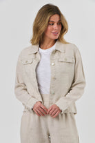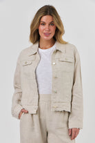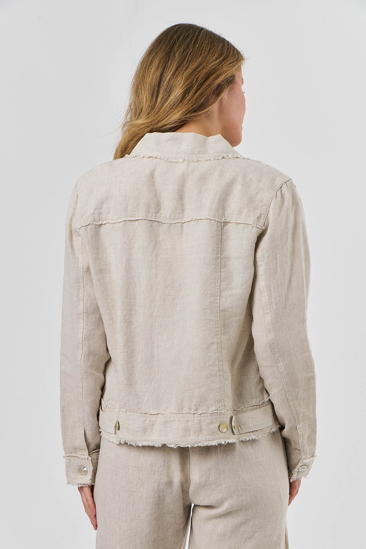 The jacket that goes with everything — and we mean everything. Crafted from 100% linen, this lightweight summer layer is your throw-on-and-go essential. With a classic point collar, full button-down front, and two flap pockets at the chest, it brings just the right amount of structure without ever feeling too done. The raw edge detailing adds a relaxed, lived-in charm that we absolutely love.