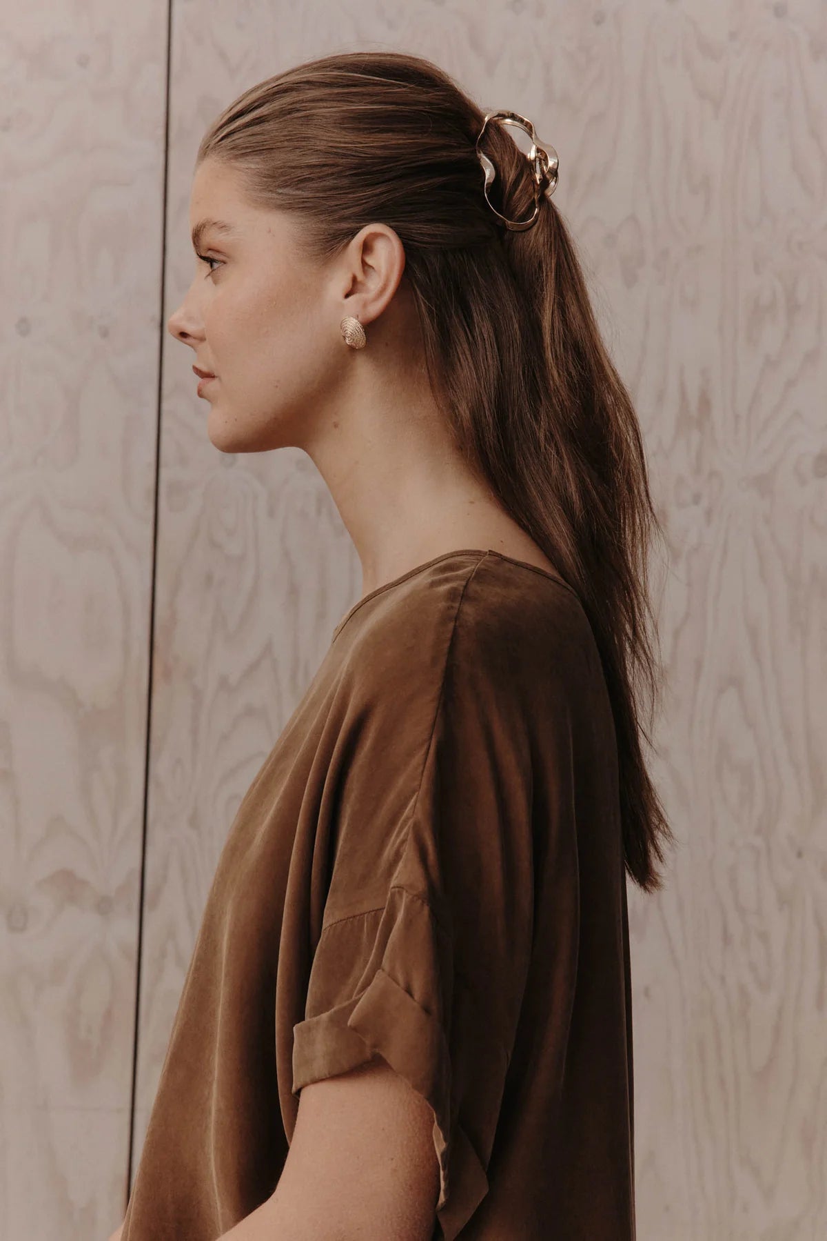 The Ivy Small Claw is crafted with an artful, organic design that's sure to turn heads and become a cherished accessory this season. The refined metal framework adds subtle elegance to swept-up hairstyles, perfect for windy outdoor days or relaxed self-care days indoors.