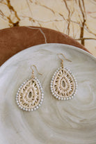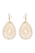 Statement teardrop earrings wrapped in natural raffia with stone detailing. Lightweight for all-day wear.