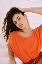 Elegant small half hoop with a subtle pearl or colour detail. Crafted from copper with timeless styling.