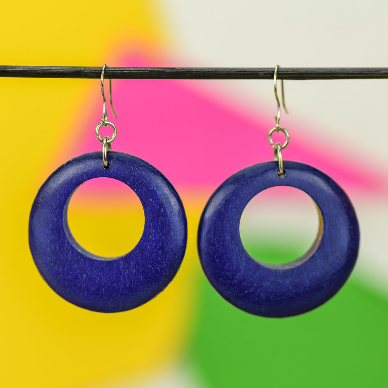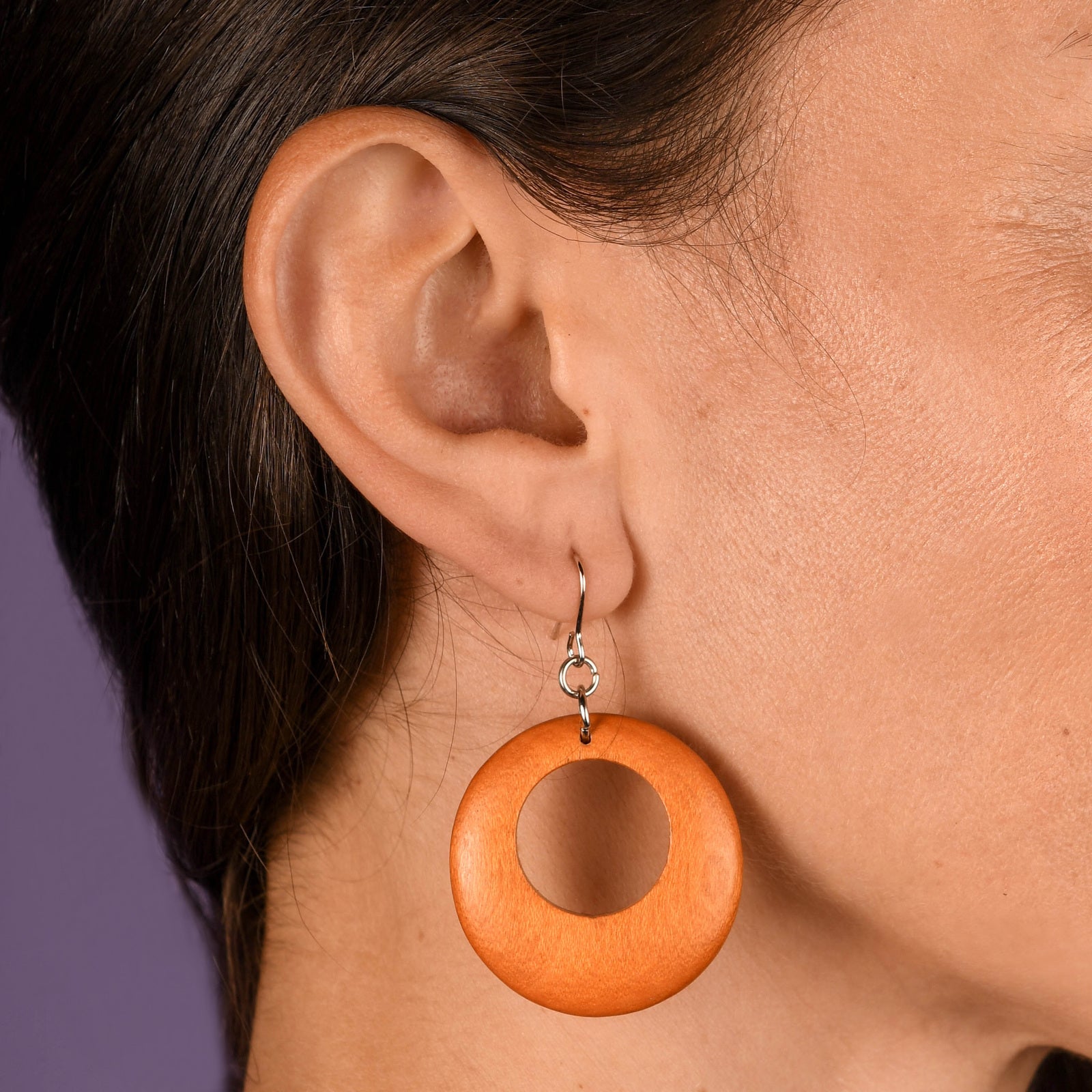 Unique, stylish and sustainable, these Round Cut Out Wooden Earrings are handcrafted from renewable Panguantuon wood. With lightweight design and a smooth finish, plus nickel free surgical steel hooks, you can enjoy wearing these ethically sourced earrings with confidence. A perfect accessory for any occasion!