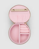 The Sisco Jewellery Box is a sweet little treasure keeper made for days on the move. Compact, secure and beautifully finished in soft vegan leather, it keeps your favourite pieces snug and organised wherever you go. With ring rolls, compartments and a handy tab for earrings, everything stays neatly in place so you can enjoy your travels without a single tangle.