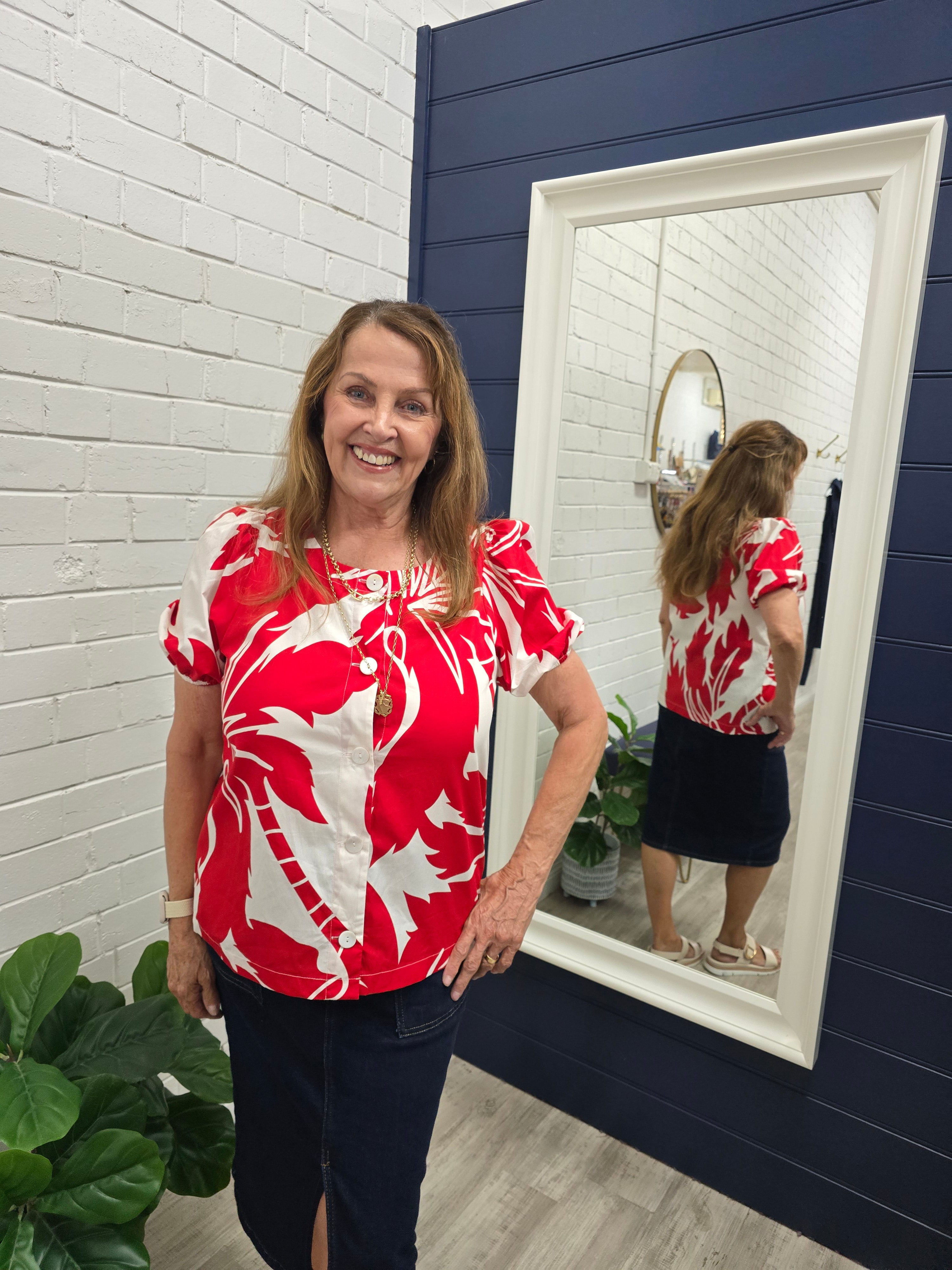 Tropical Palm Top - Red