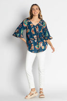 Add a burst of colour and personality to your wardrobe with the LulaLife Arriba Top. Designed in Australia and crafted from 100% cotton, this lightweight piece is all about comfort and fun. The relaxed fit, soft gathers from the neckline, and flounced ¾ sleeves create a flowing, easy-wear silhouette you’ll reach for time and time again. Finished in a bold retro Mexican western-inspired digital print, it’s a statement style that feels effortlessly wearable.