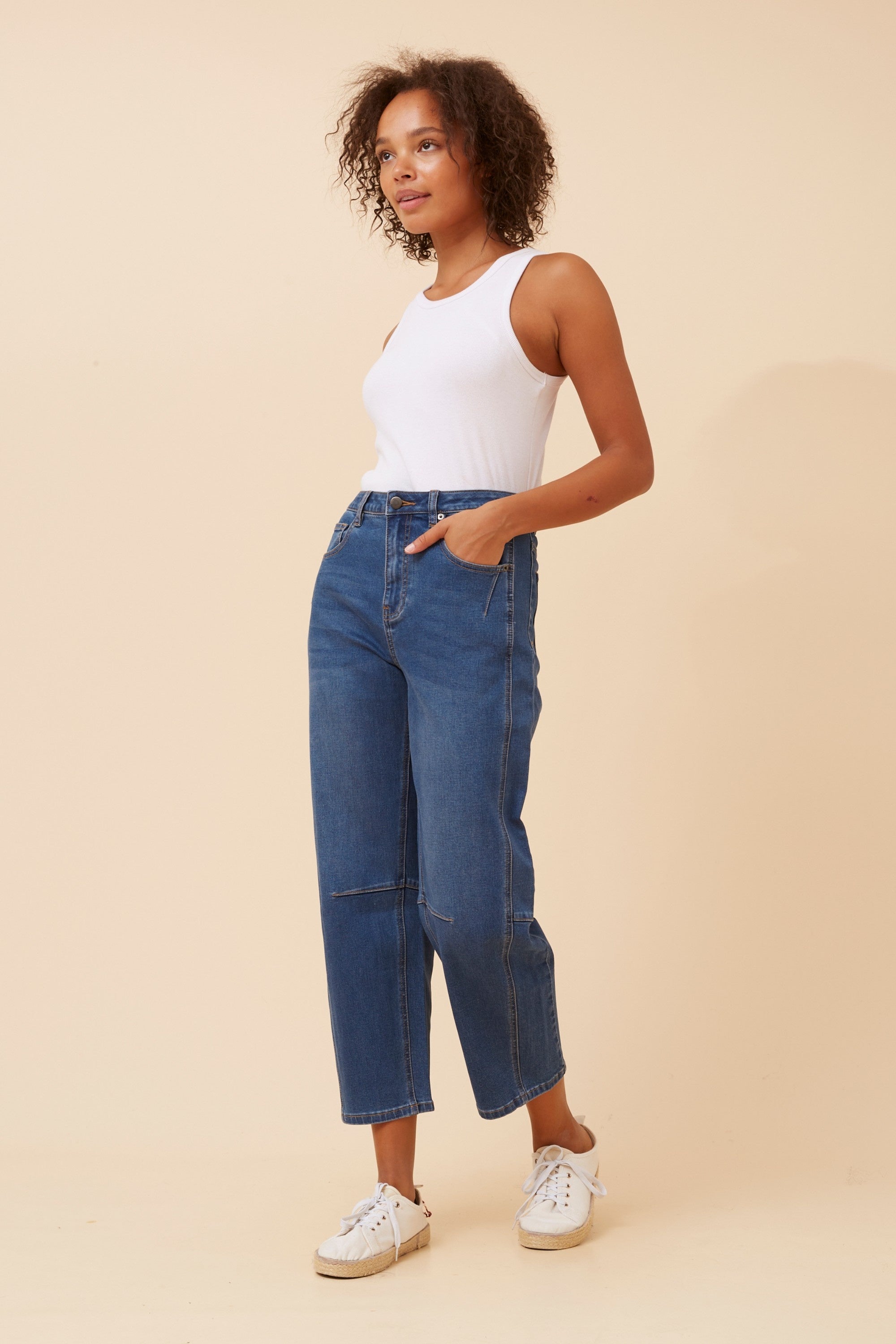 A fresh, modern take on everyday denim, the Barrel Jogger Jean is all about relaxed confidence with a polished edge. The high-rise waist feels supportive and flattering, while the softly sculpted barrel leg gives this pair an effortless, fashion-forward shape that still feels easy to wear. Comfortable enough for everyday, stylish enough to feel special.