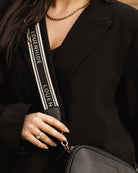 The Bianca Black Crossbody Bag is a stylish yet practical companion, thoughtfully crafted for life on the move. This women’s crossbody bag features a compact, camera-style silhouette that combines everyday functionality with timeless appeal. Made from buttery soft vegan leather and finished with light gold hardware, Bianca black brings a polished touch to casual styling. As a travel-friendly crossbody, she’s lightweight and easy to wear, with two interchangeable strap options: a bold logo webbing guitar strap for statement appeal, or a matching adjustable vegan leather strap for a more refined look. A secure zipper handbag by design, Bianca black keeps your essentials safe and within easy reach. Inside, you’ll find two internal pockets to keep your valuables organised and close at hand. Effortlessly versatile, she is the