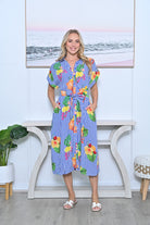 Bring a burst of sunshine to your day with the Citrus Bloom Dress. Showcasing a cheerful stripe and citrus berry print, this fun and feminine style features a collared neckline, short sleeves with tab detail, and a button-through front. The matching belt and handy pockets add the perfect finishing touches.