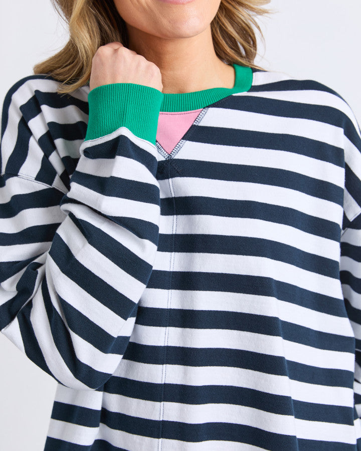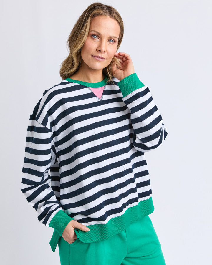 The Maps Crew is that relaxed, throw on and go layer that makes everyday dressing feel easy. Designed in a comfortable oversized fit with yarn dyed stripes, it brings a fresh, playful touch to your casual wardrobe. The contrast rib detailing adds that little extra interest while still keeping the look beautifully laid back.