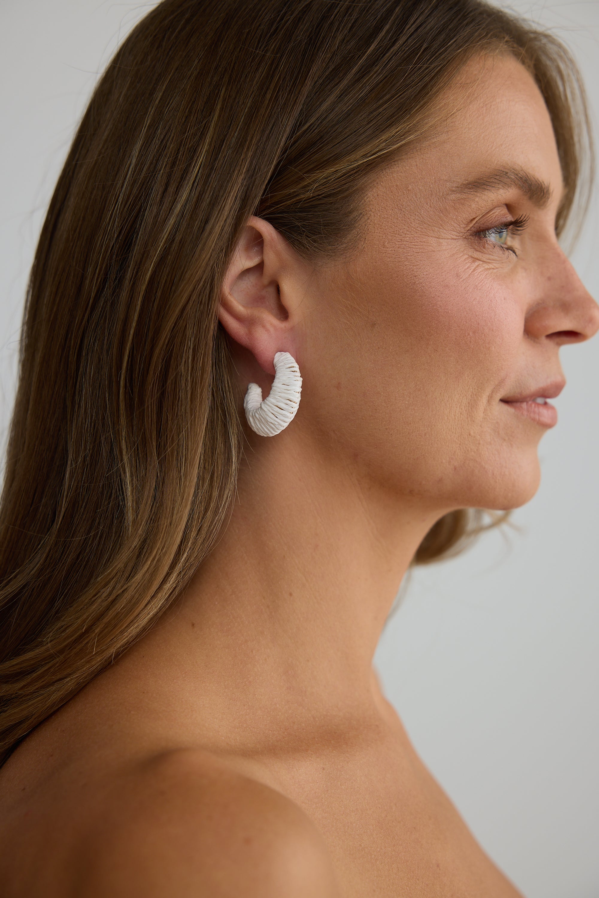 Complete your look with the Nala Earrings, perfectly paired with the Chained Up Necklace. Lovingly handmade in India, these earrings combine natural fibres with elegant link details, offering a lightweight and stylish accent that adds charm to any outfit.