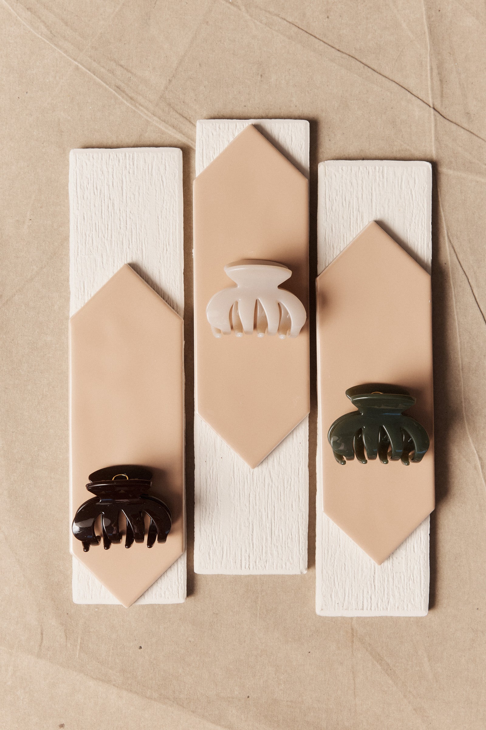 A small claw clip designed with gently curved edges for an elegant finish. Ideal for everyday styling with a polished feel.
