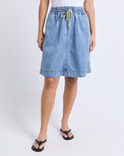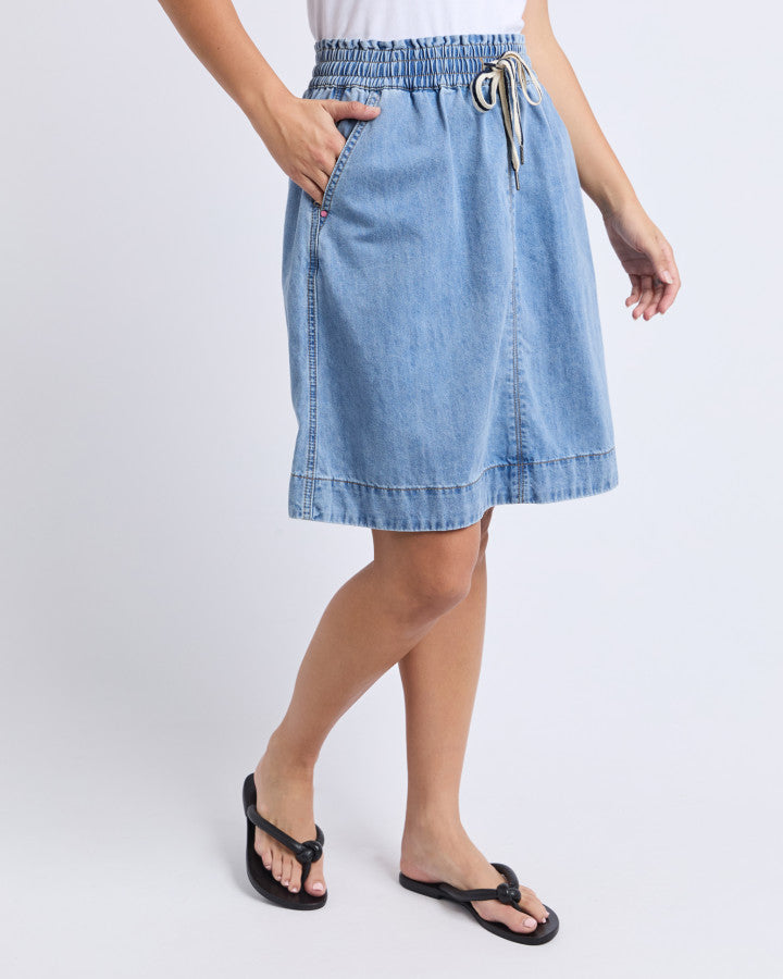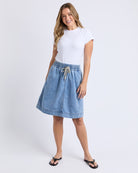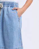 The Paisley Denim Skirt brings a fun, easy take on everyday style with its light blue denim and relaxed feel. Inspired by the much loved Greta Skirt, this shorter version keeps things comfortable with a wide elastic waistband and a soft drape that moves with you. It’s casual, classic and wonderfully simple to wear, making it an instant favourite for warm weather days.